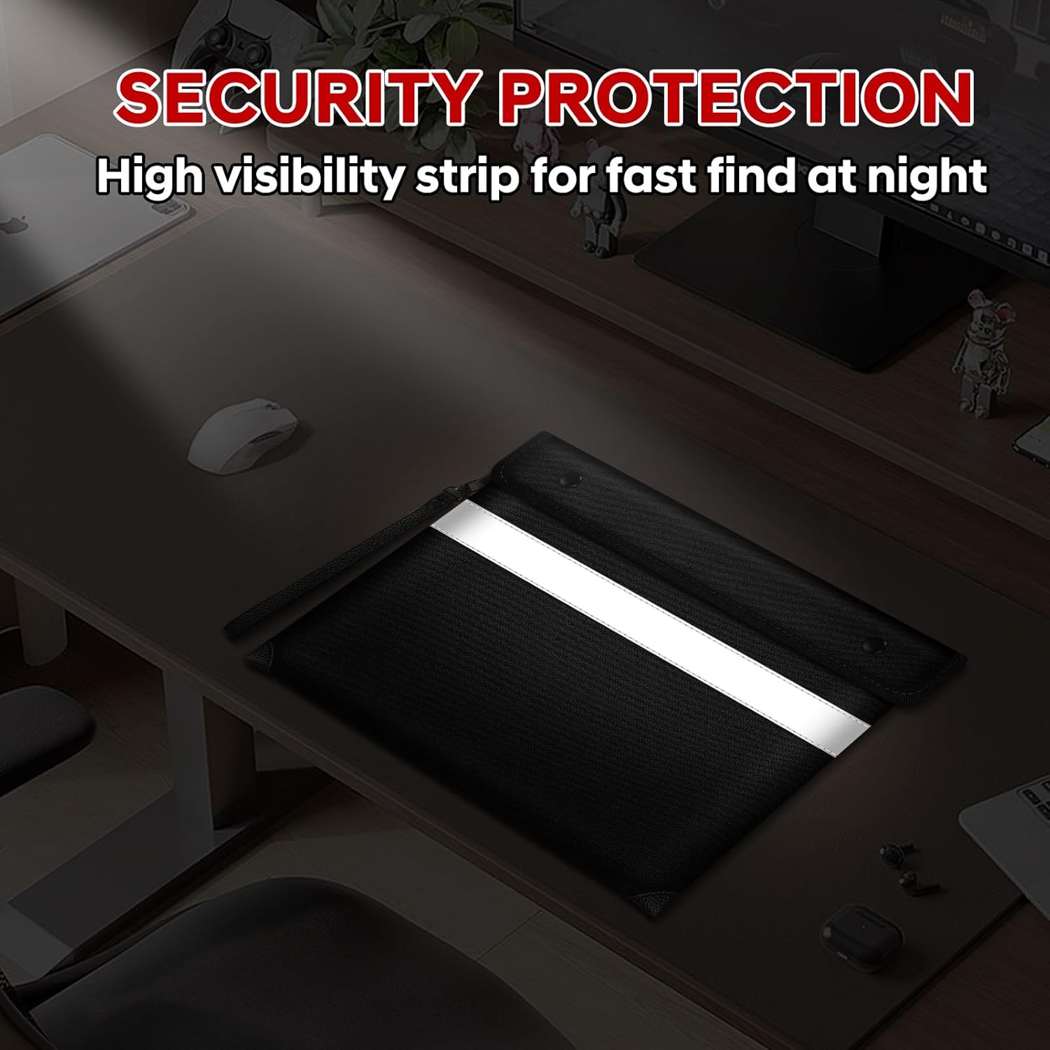 Fire Proof Money Bag for Cash 5200℉ Heat Insulated,Fireproof Waterproof Document Pouches with Double-Sided Reflective Strip,Money Envelopes for Cash,Valuables,Jewelry(11"x7.7",Black)