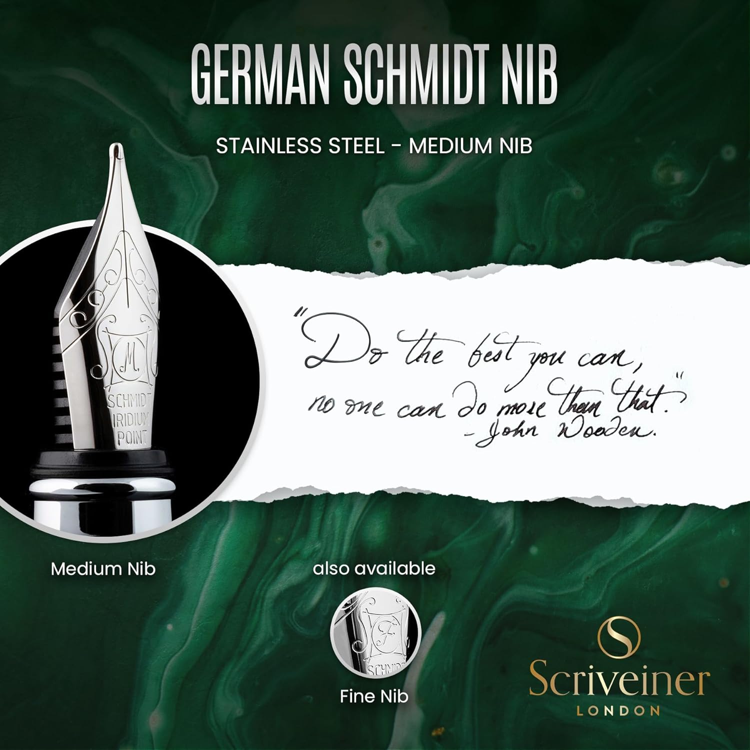 Scriveiner Personalized British Racing Green Pen - Stunning Green Lacquer Luxury Pen w/Chrome Finish, German Schmidt Nib (Medium), Best Engraved Fountain Pen Gift Set for Men & Women, Name Engraving