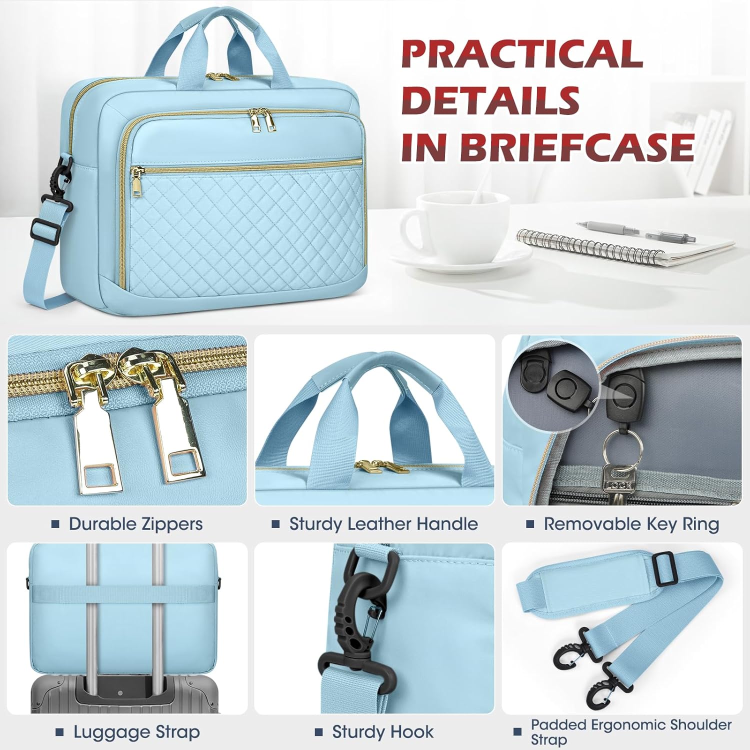 - 【Convenience & Comfortable Design】TSA friendly, separate tech compartment and large opening design allow you to quickly pass through the security check. The laptop bag for women features removable, adjustable padded shoulder strap that can adjust the length to fit different heights and reduce shoulder pressure. Sturdy PU handle to ensure comfortable carrying. Luggage strap allows the laptop messenger bag to slide over the luggage tube, freeing up your hands.