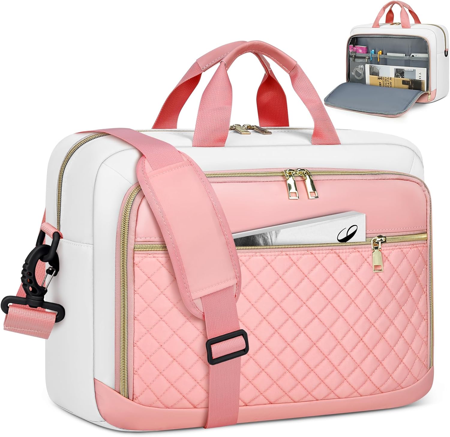 NEWHEY Laptop Bag 17.3 Inch Laptop Briefcase for Women Men Waterproof Shoulder Messenger Bag Large Computer Bag for Business Office Work College, Pink&Beige