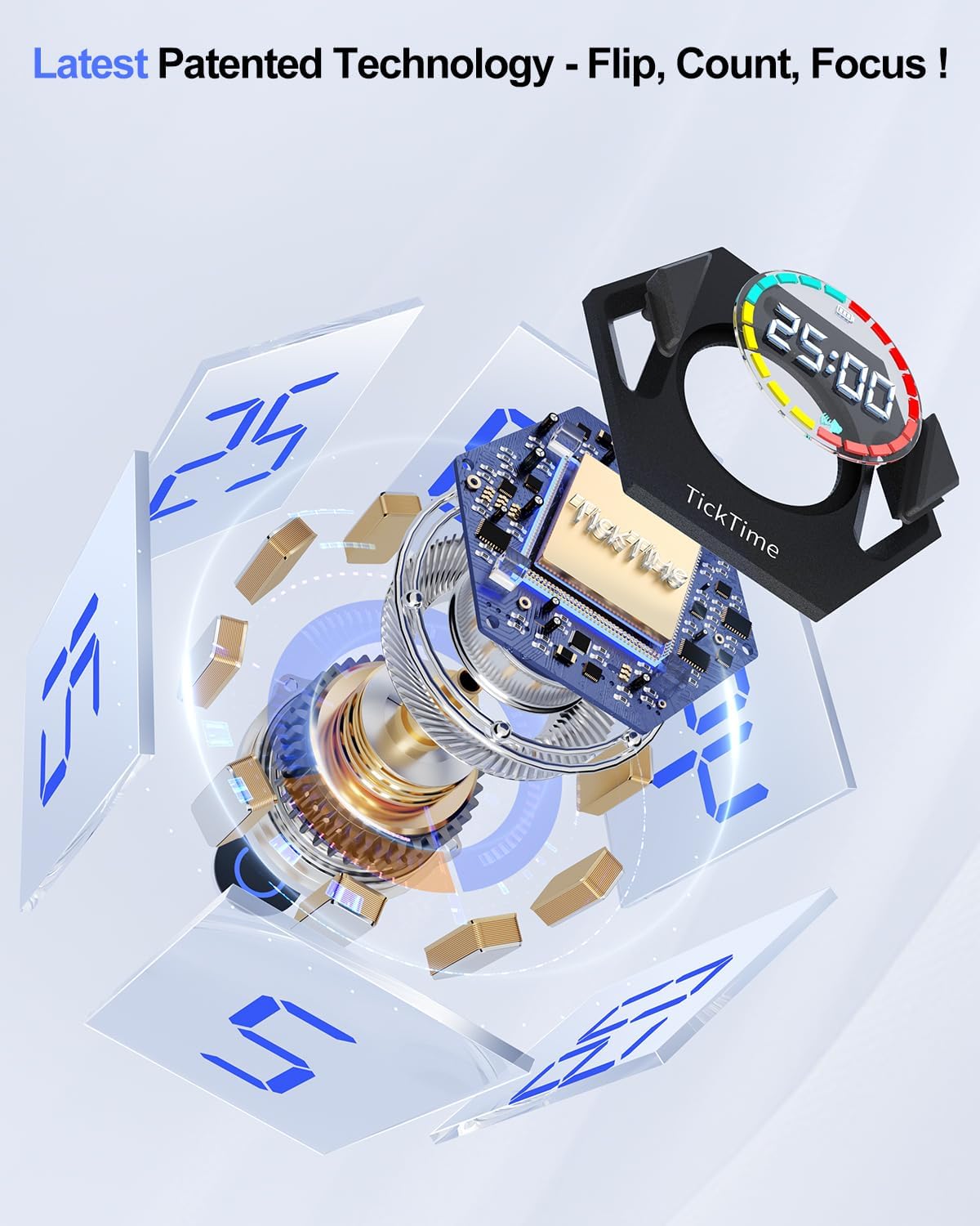 - Flip to Start the Countdown. The pomodoro timer has 6 preset times countdown(5/15/25/30/45/60 minutes) which are activated by flipping the timer over, with the number facing up. Additionally, you can easily set custom countdown time by pressing the two buttons. Change the way you manage your time, and make every minute count.