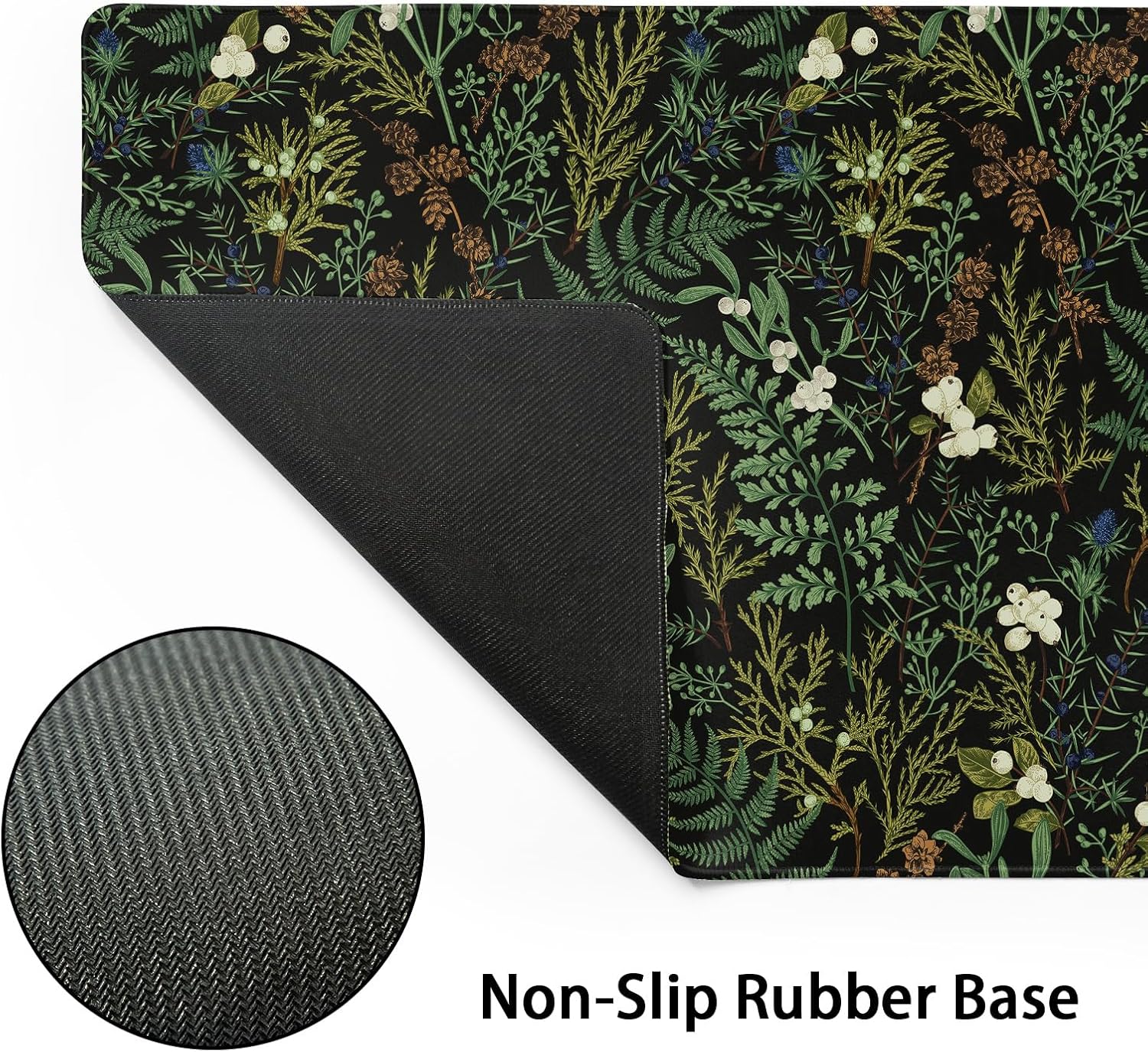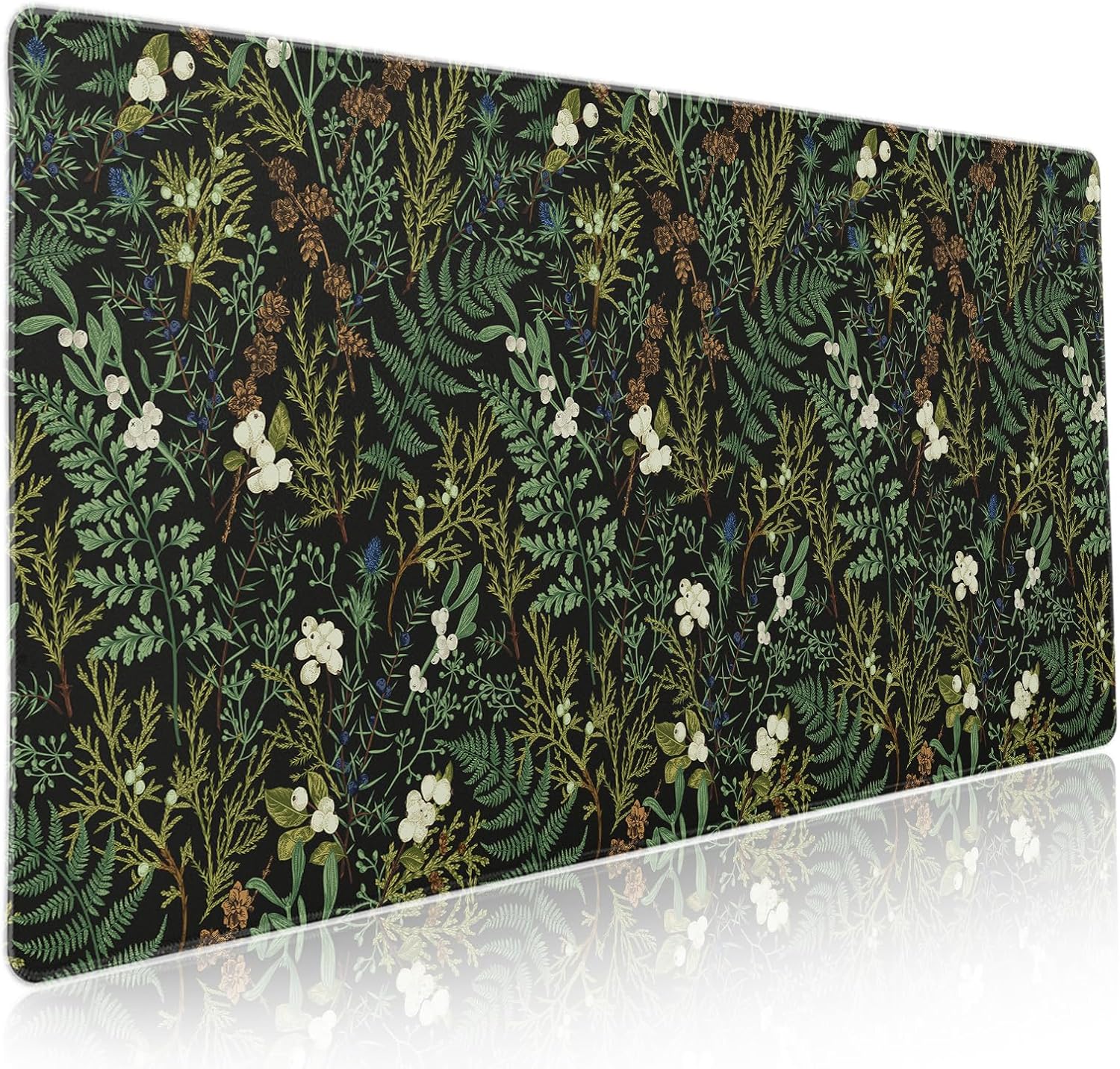 Black Aesthetic Vintage Botanical Gaming Mouse Pad XXL Cute Forest Green Plant Nature Floral Extended Large Mouse Pad Big Mousepad Non-Slip Stitched Edge Long Mat for Desk Office Computer,35.4x15.7 in