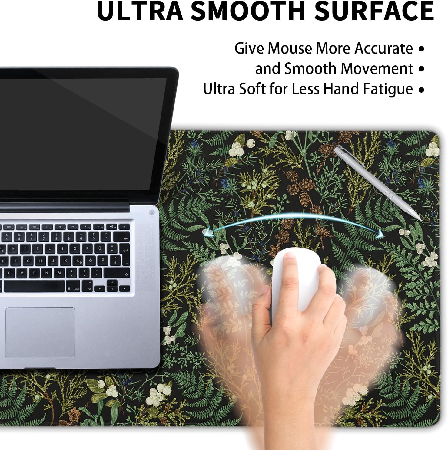 - ★【Superior Control Surface】: Cute Forest Green Plant Nature Floral computer mouse pad large designed with superfine fiber braided Material, smooth surface will provide you with frustration-free mouse movement. Optimized for fast movement while maintaining excellent speed and control during your work or game.