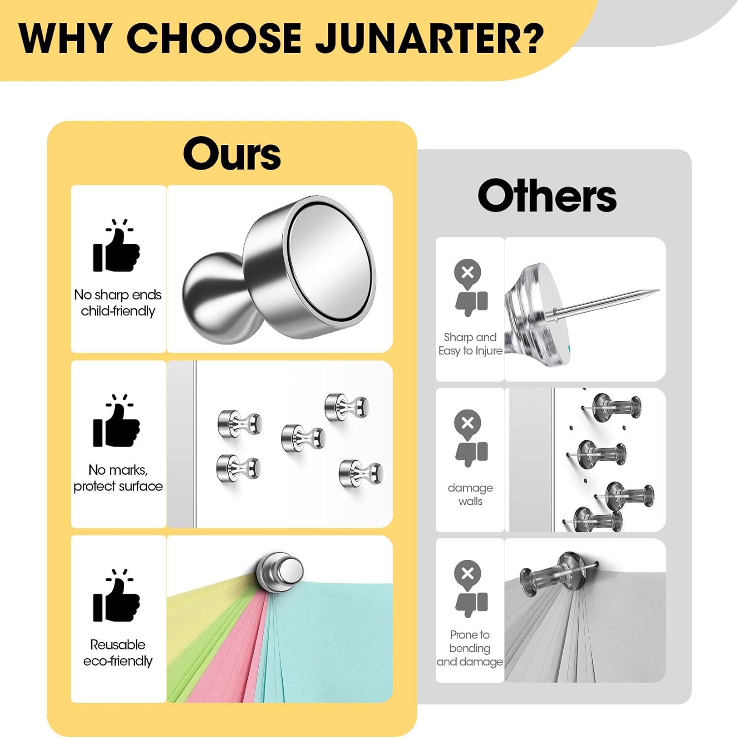 - 【Good material】Our magnets are made of high quality metal and durable stainless steel construction, are magnetic and rust resistant.Strong refrigerator magnets each one can holds up to 15+ sheets of A4 paper or 30+ sheets of sticky notes on whiteboard.