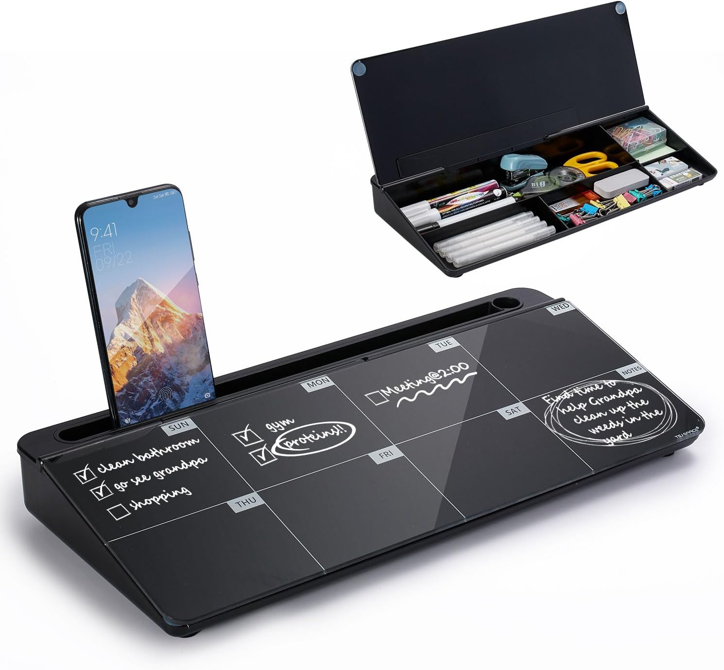- SMOOTH WRITING & EASY TO WIPE: TSJ OFFICE mini desktop computer pad comes with a smooth and durable temple glass dry erase writing surface. This white board allows you to write and wipes clean with ease over and over. Our easel whiteboard always stays white and easy to read.