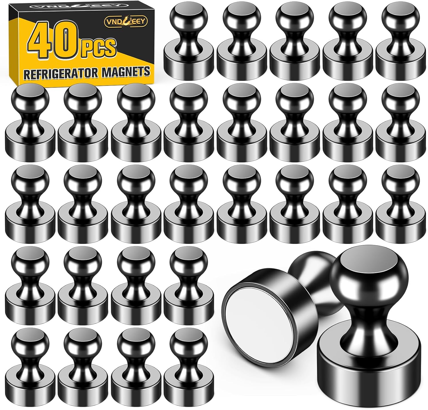 VNDUEEY 40Pcs Black Refrigerator Magnets Fridge Magnet, Strong Whiteboard Magnets, Fridge Magnets Adults, Small Magnet for Kitchen, Office, School, Locker
