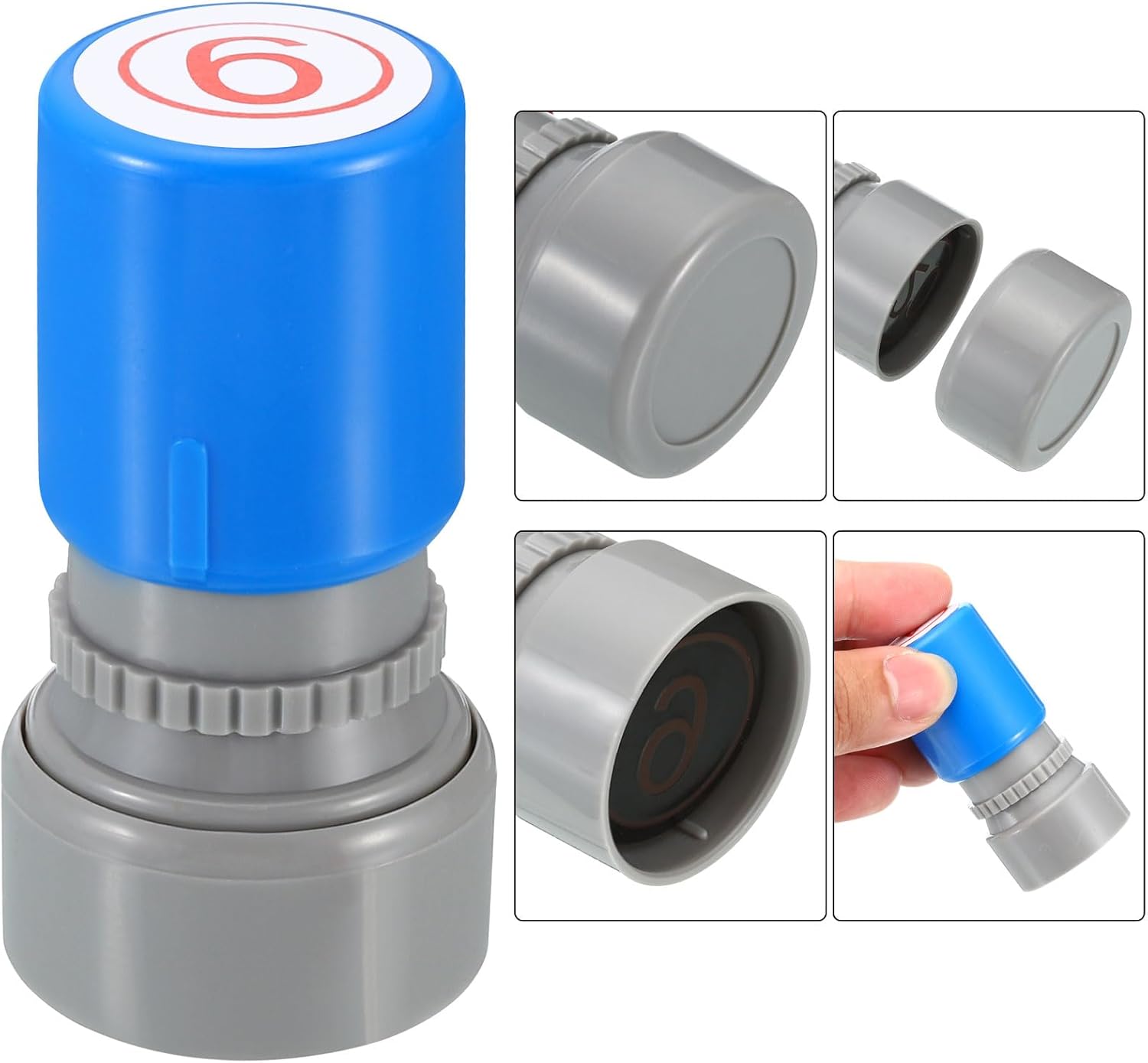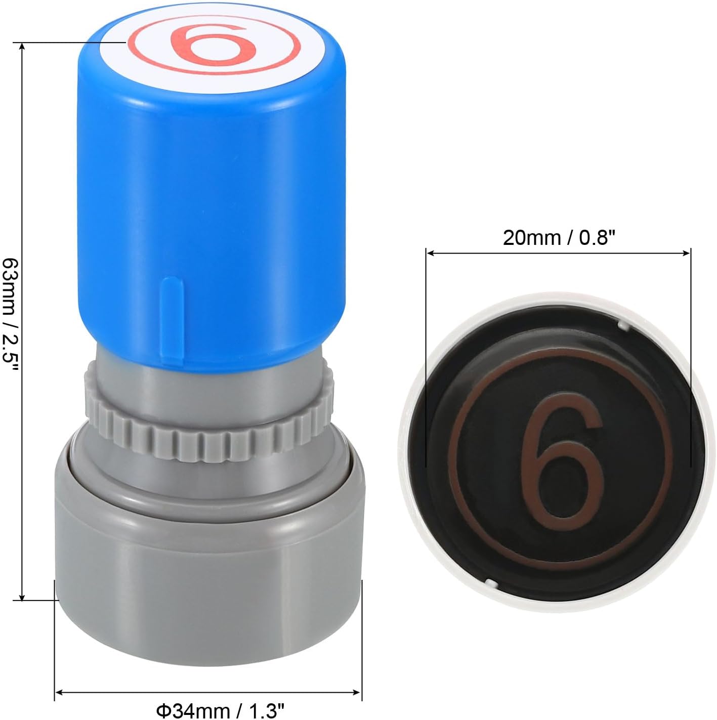 - Ink Color: Red; Shell Color: Blue; Pattern: Digital 6; Material: Plastic; Character Size: 20mm / 0.8 inch; Overall Size: 34 x 63mm / 1.3 x 2.5 inch(D*H); Packing List: 1 x Number Learning Stamp, 1 x Ink