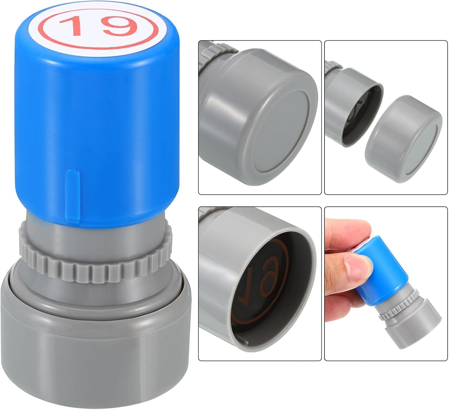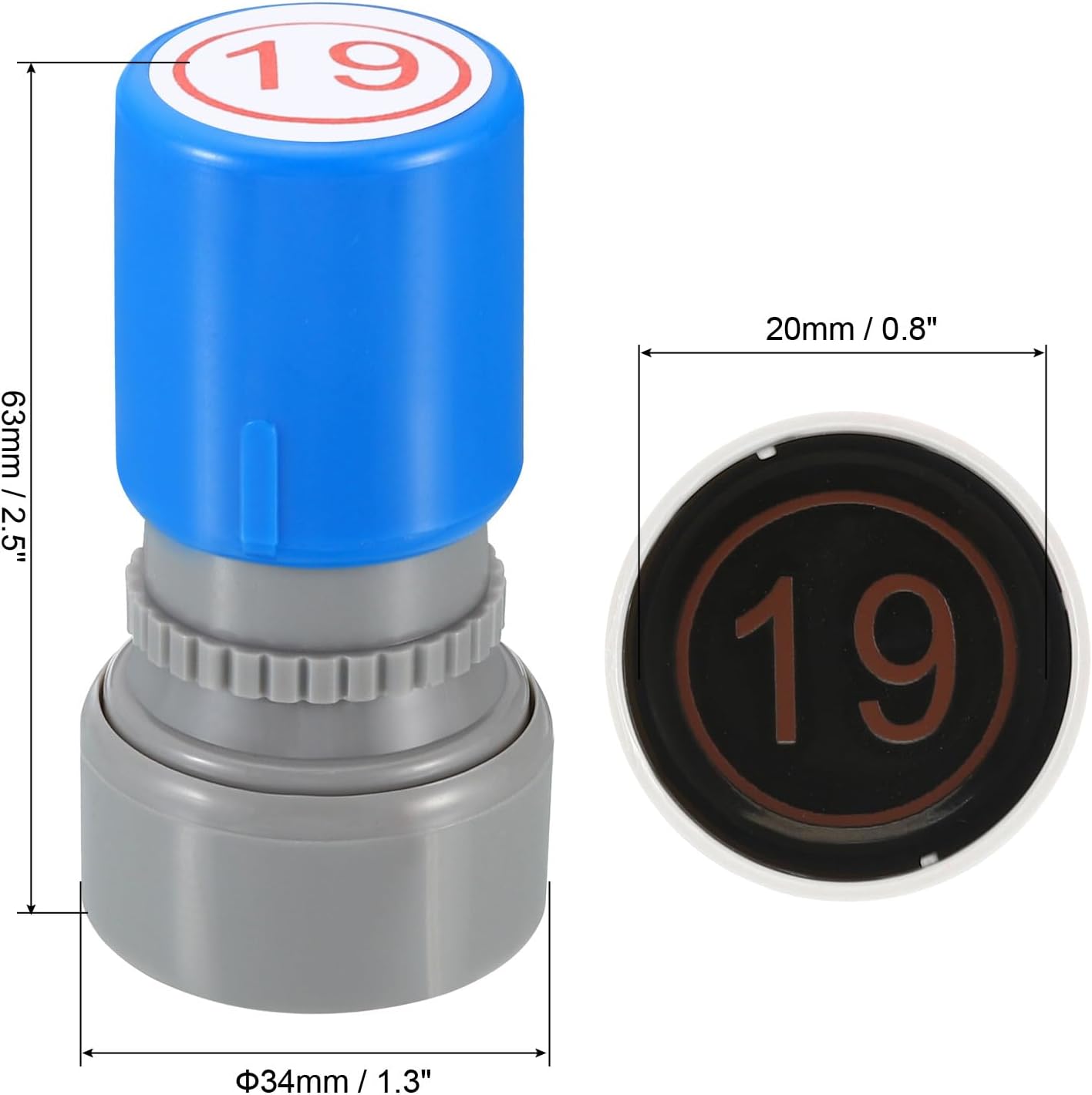 - Ink Color: Red; Shell Color: Blue; Pattern: Digital 19; Material: Plastic; Character Size: 20mm / 0.8 inch; Overall Size: 34 x 63mm / 1.3 x 2.5 inch(D*H); Packing List: 1 x Number Learning Stamp, 1 x Ink