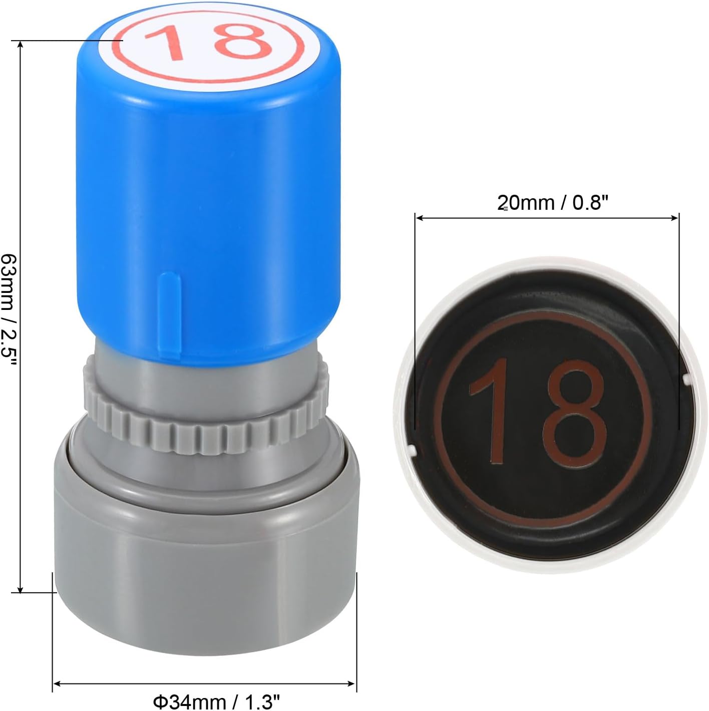 - Ink Color: Red; Shell Color: Blue; Pattern: Digital 18; Material: Plastic; Character Size: 20mm / 0.8 inch; Overall Size: 34 x 63mm / 1.3 x 2.5 inch(D*H); Packing List: 1 x Number Learning Stamp, 1 x Ink