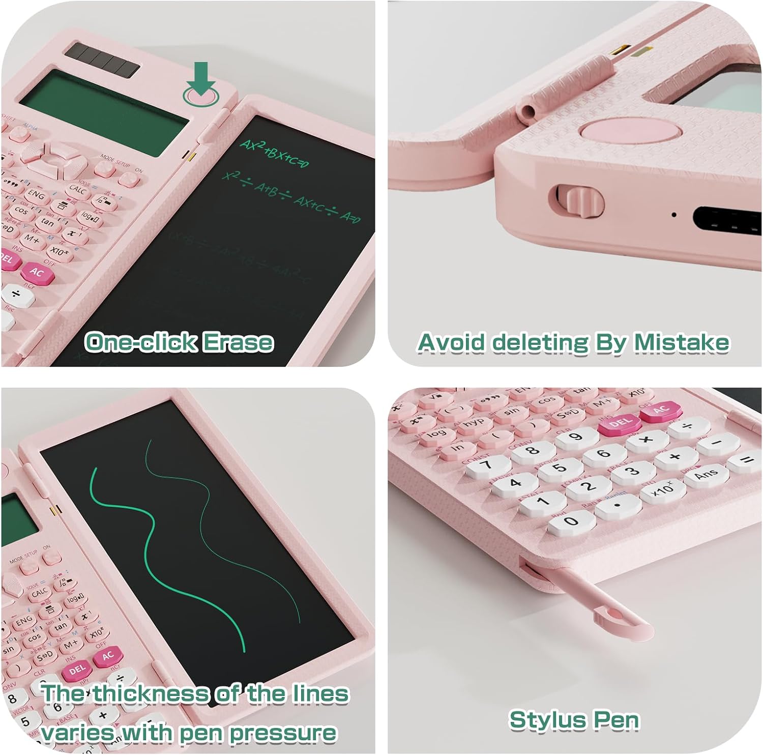 - Scientific Calculator with Notepad: Come with a 6.5 inch writing tablet and a pen, allowing you to take notes while calculating. Press the delete button to erase the notes, and also can lock it to keep it (Slide the LOCK KEY)