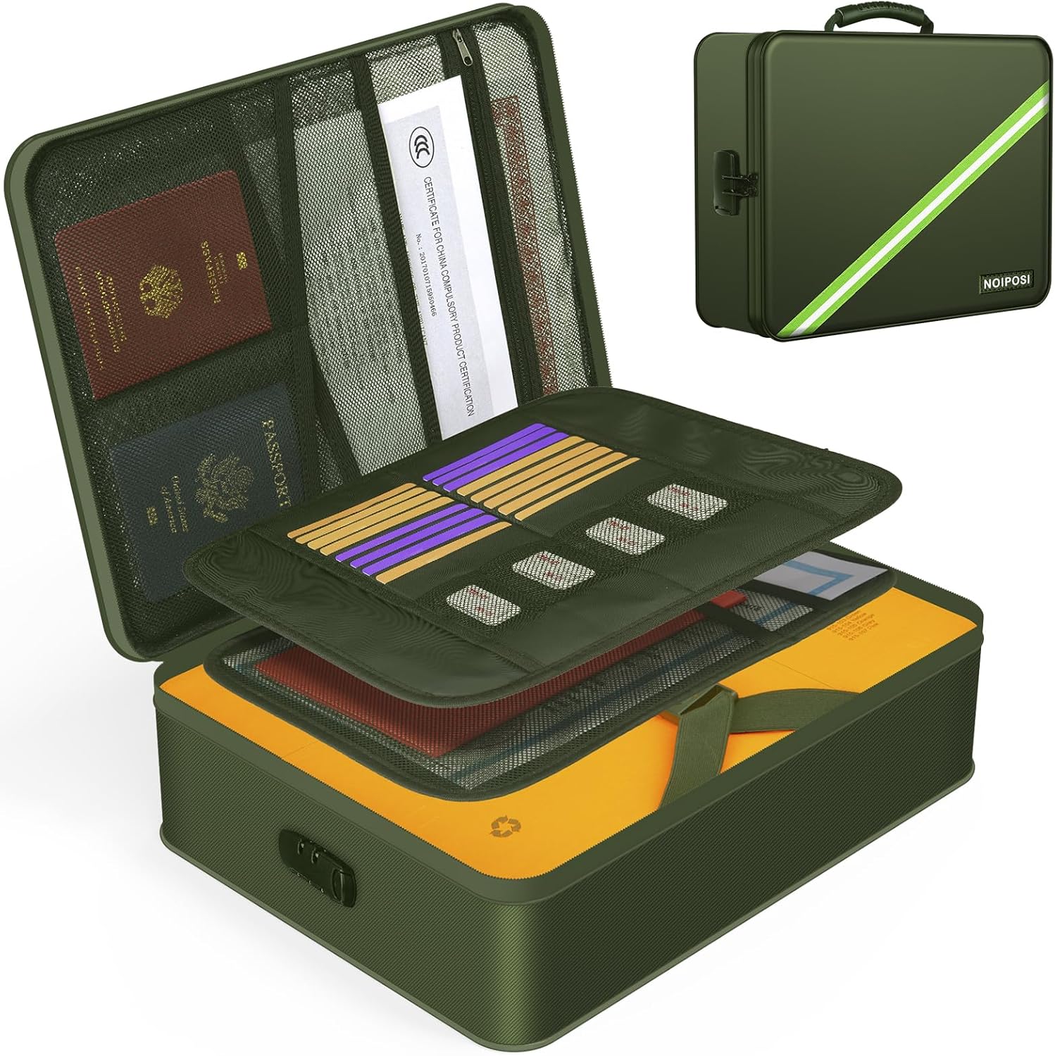 Noiposi Document Organizer with 5200℉ Heat Insulated,Waterproof and Fireproof Document Box,Portable Home Travel Safe Storage Box for Important Documents,File and Birth Certificate,Green