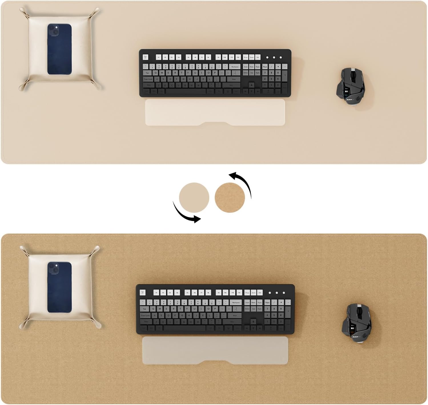 DAWNTREES Dual Sided Desk Mat,Leather Desk Pad,40"x16",Cork Desk Mat Protector,with PU Leather Valet Tray Organizer,Large Mouse Pad,Desk Writing Pad for Office and Home(Khaki)