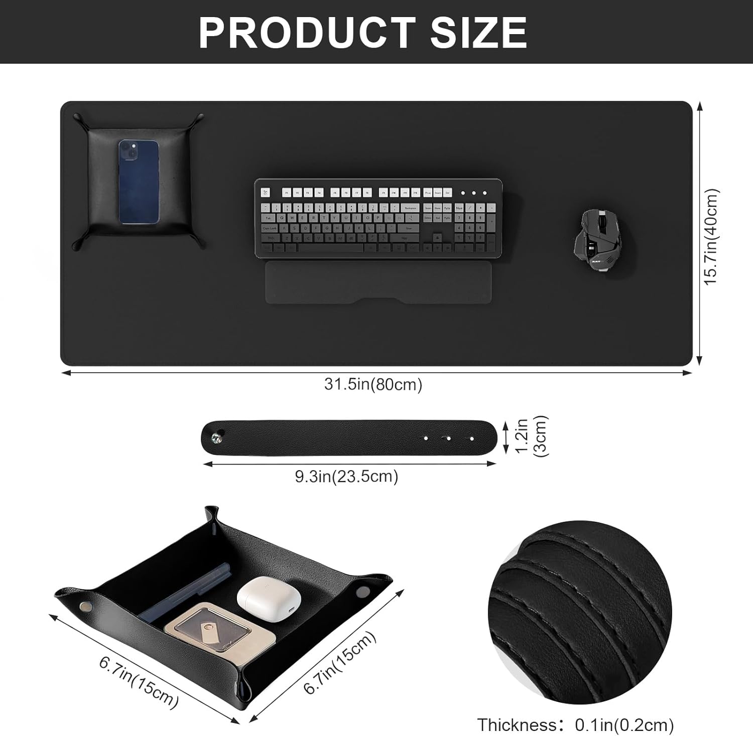 DAWNTREES Dual Sided Desk Mat,Leather Desk Pad,Black Cork Desk Mat Protector,with PU Leather Valet Tray Organizer,Large Mouse Pad,Desk Writing Pad for Office and Home(31.5"x15.8")