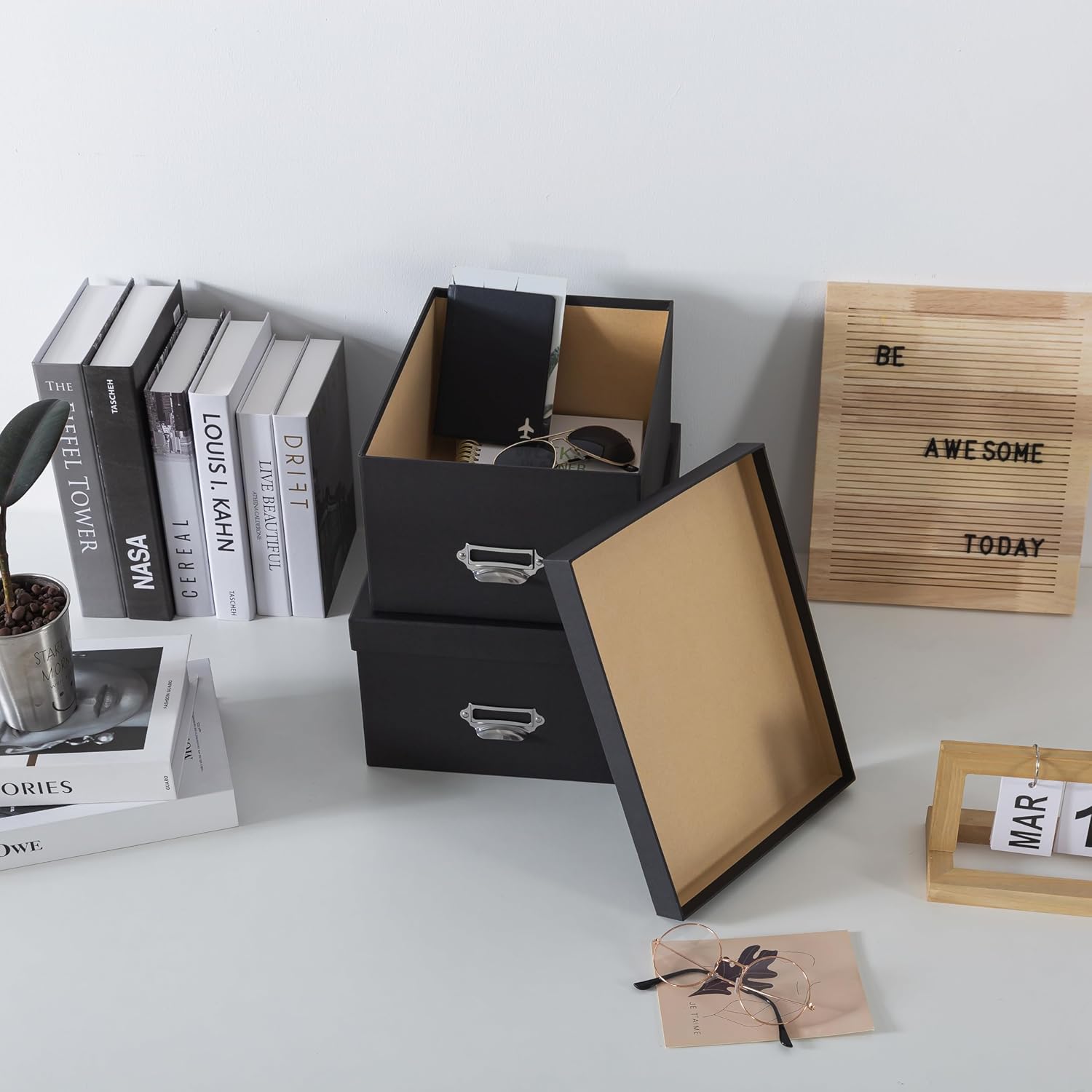 - FUNCTIONAL DESIGN ACCENTS: Equipped with silver drawer pulls and label holders, these boxes marry form with function. The metal accents not only add a refined touch but also allow for easy access and organization. Effortlessly create a cataloged storage system with the built-in label holder, bringing order to your memories and essentials.