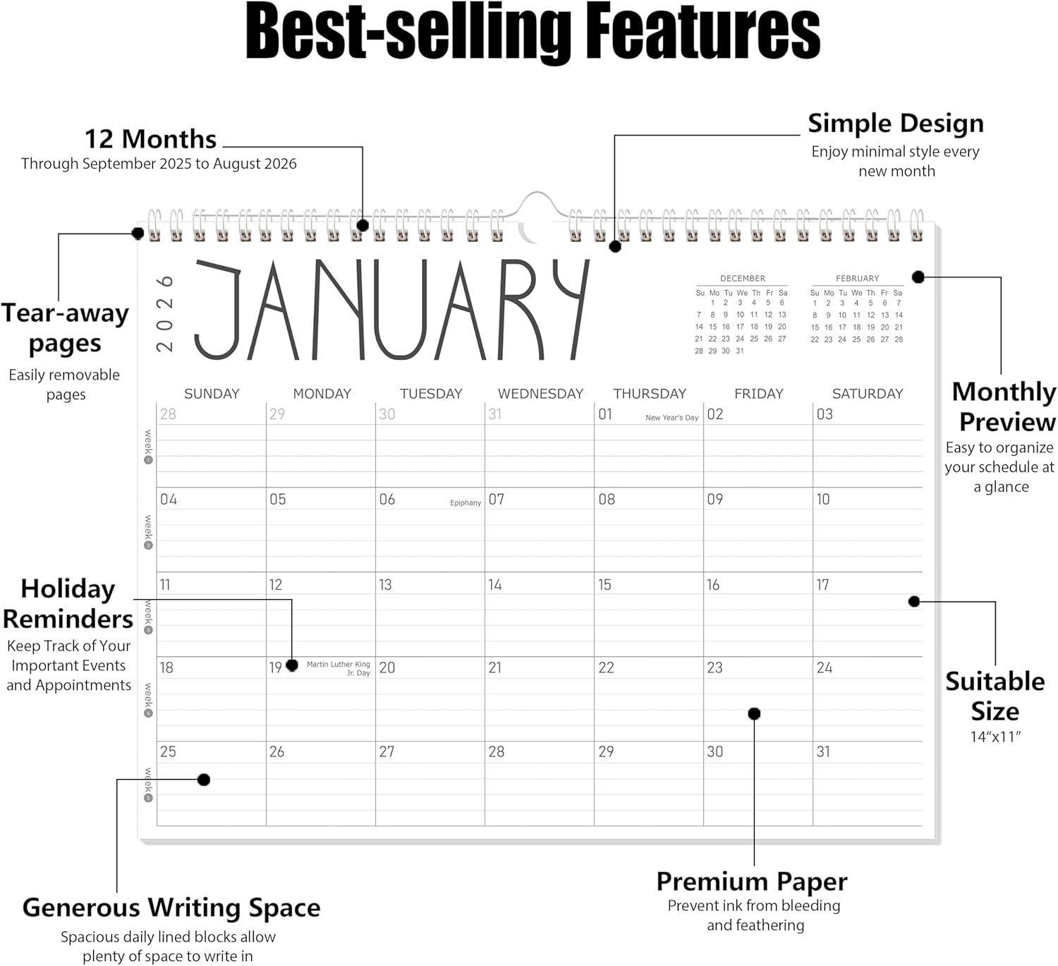 - 12 MONTHS WALL CALENDAR: Elevate your planning game with our 2025-2026 wall calendar! This monthly wall calendar measures 14 x 11 inches and features 12 months from September 2025 to August 2026. It is equipped with metal spiral binding and hanging hook for easy wall mounting. Use it to keep track of important appointments, meetings and events