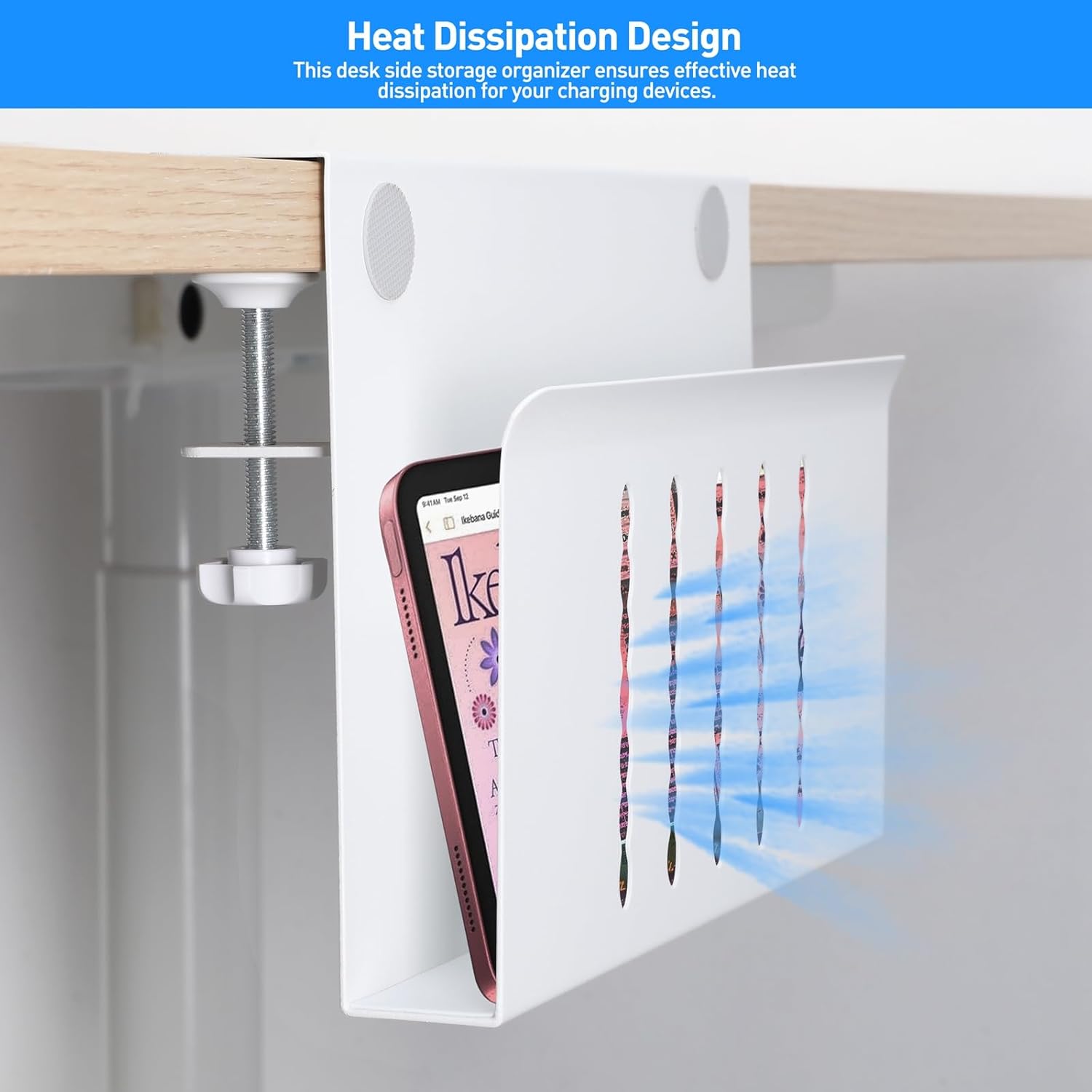 - 【Clamp Under Desk Storage & No Drill Design】Our clamp on side desk storage requires no drilling or tools. The rubber cushion prevents scratches on desks and other objects, and the rounded corners design also helps avoid scratches.