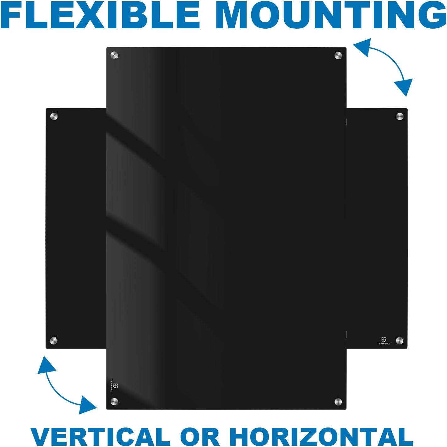 TSJ OFFICE Glass Dry-Erase Board - 48 x 32 Inches Wall Mounted Black Glass Magnetic Whiteboard, Large Frameless White Board for Office, Home & School
