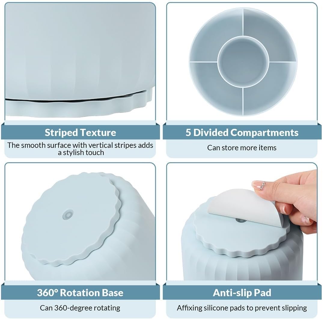 SKYDUE 360 Degree Rotating Desk Organizer, Dual-Purpose Pencil Pen Holder for Desk, Rotating Pencil Cup with 5 Slots, Office Supplies, Desk Decor for Office, School, Home