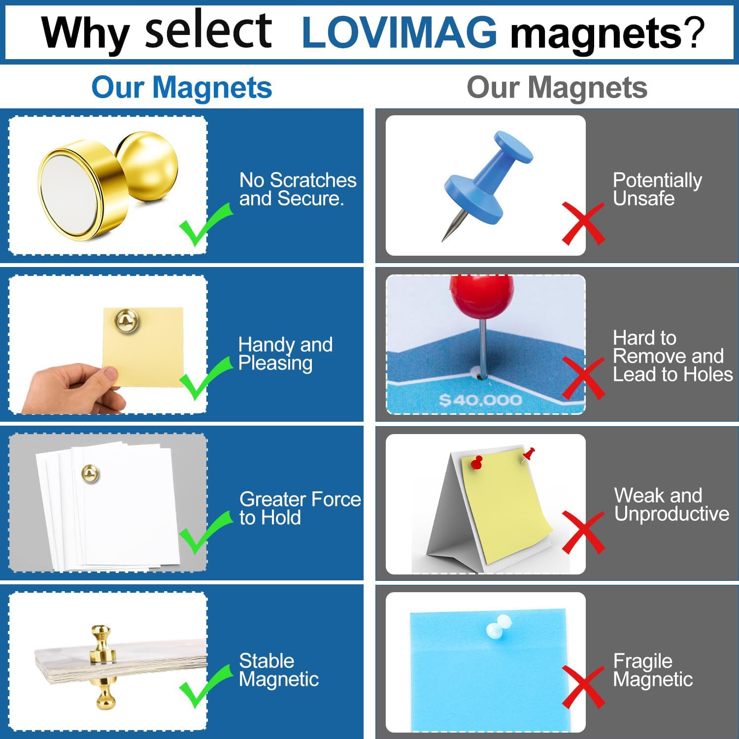 - 【PREFECT SIZE】The size of magnets for fridge are 0.47in x 0.63 in.They're small enough not to cover up what you're hanging up. The ends of whiteboard magnets make them easy to grip and move. Plus they look nice.