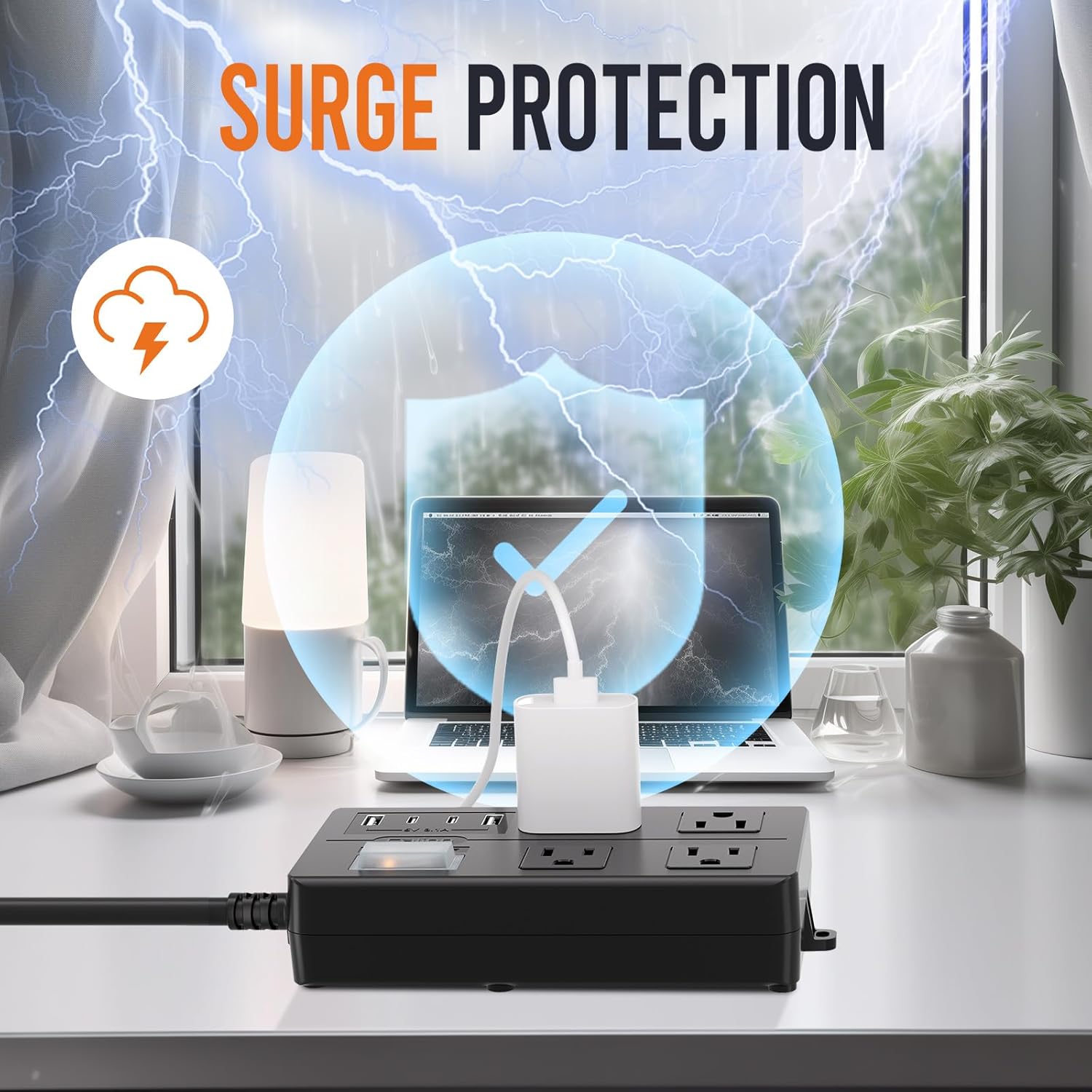 - 【High Quality Material】Crafted with precision, our surge protector outlets boast a construction using 1382°F heat-retardant ABS+PC material;The 16AWG heavy-duty (3x1.3 mm²) extension cord features a reinforced, crack-resistant junction accredited by SJT-UL.