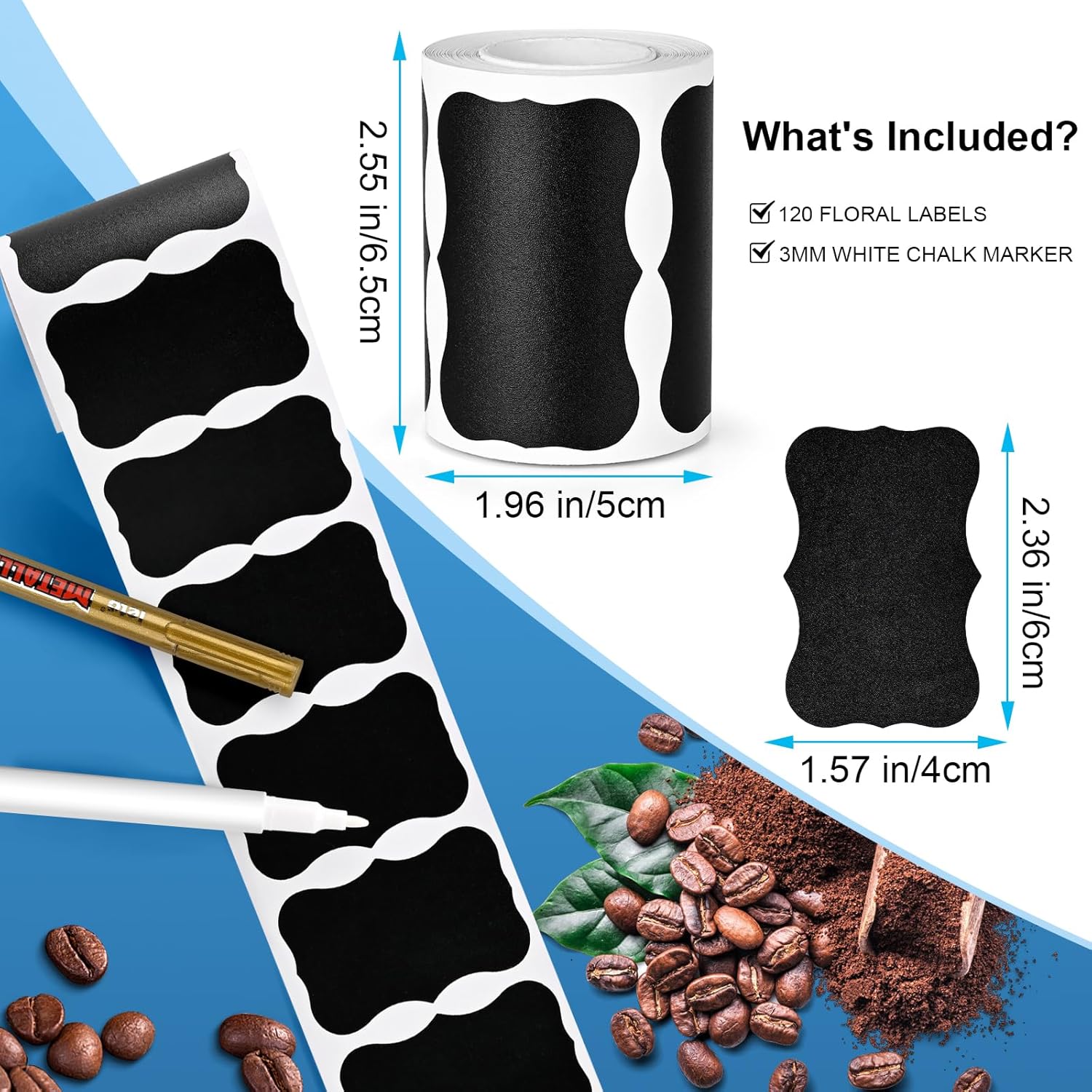 Premium Chalkboard Labels Set - 120 Removable Stickers with 2 Bonus Chalk Markers | Waterproof & Reusable | Ideal for Food Containers, Mason Jars, Pantry, Bottles
