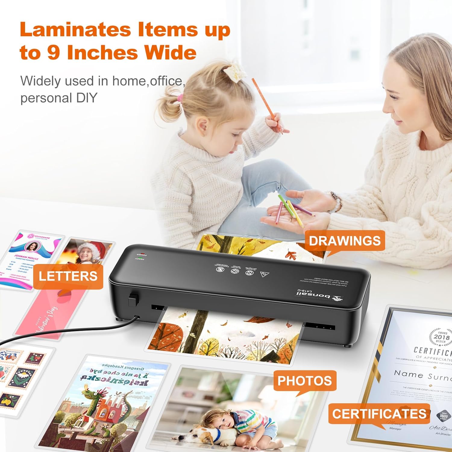 - 1 Year Professional Service - Bonsaii provides 1 year professional service for our products. If you have any questions, please tell us. *To use the laminator correctly, please refer to the "Product Description - Warning" section for common mistakes in laminating.