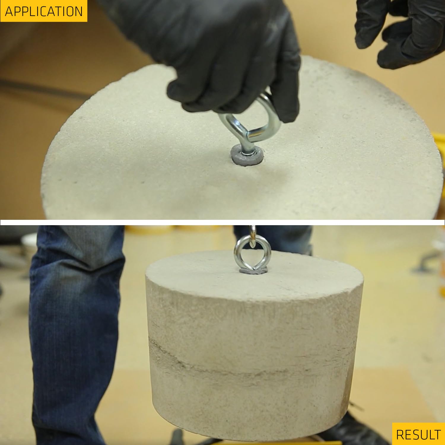 - CLEAN APPLICATION AREA TO ENSURE — After drilling hole into concrete, natural stone, masonry, or other anchorage, use blow pump and bristle brush to clean dust and debris before applying epoxy
