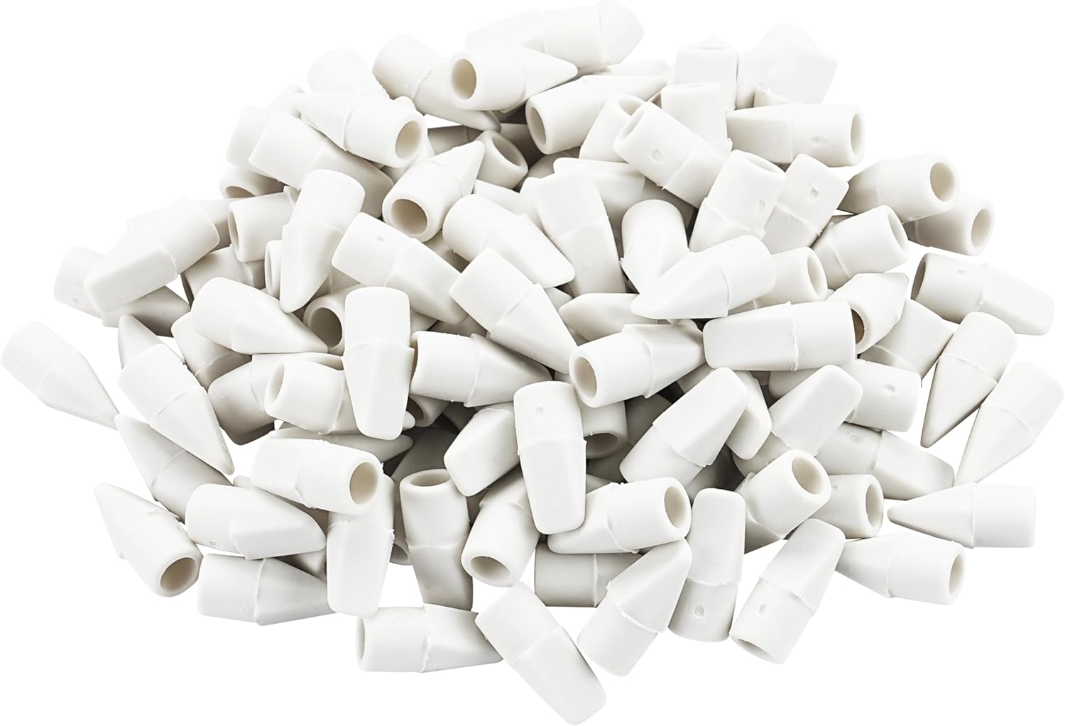 Pencil Erasers Caps Bulk, Ezzgol 128 Pcs Pencil Top Erasers Cap, White Color Arrowhead Caps Erasers Latex Free Pencil Eraser Toppers for Kids Teachers