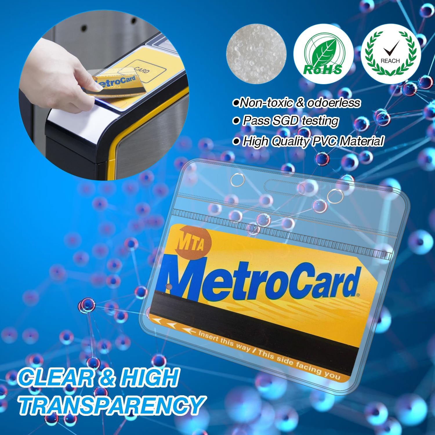 - Convenient Rotatable Badge Clip. The plastic name badge holder with clip can be easily clipped on collars, pockets and even pet cages arbitrarily; With high transparency, the information on both sides of the document is clear at a glance and easy to scan