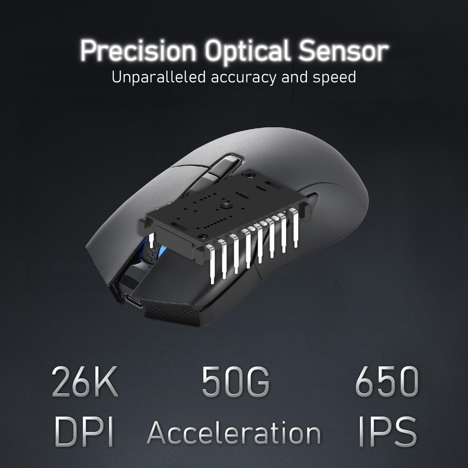 - PixArt PAW 3395 Optical Sensor ⚡️ adjustable DPI up to 26,000 dpi resolution. You can promptly adjust the moving speed for a fast response during gaming.