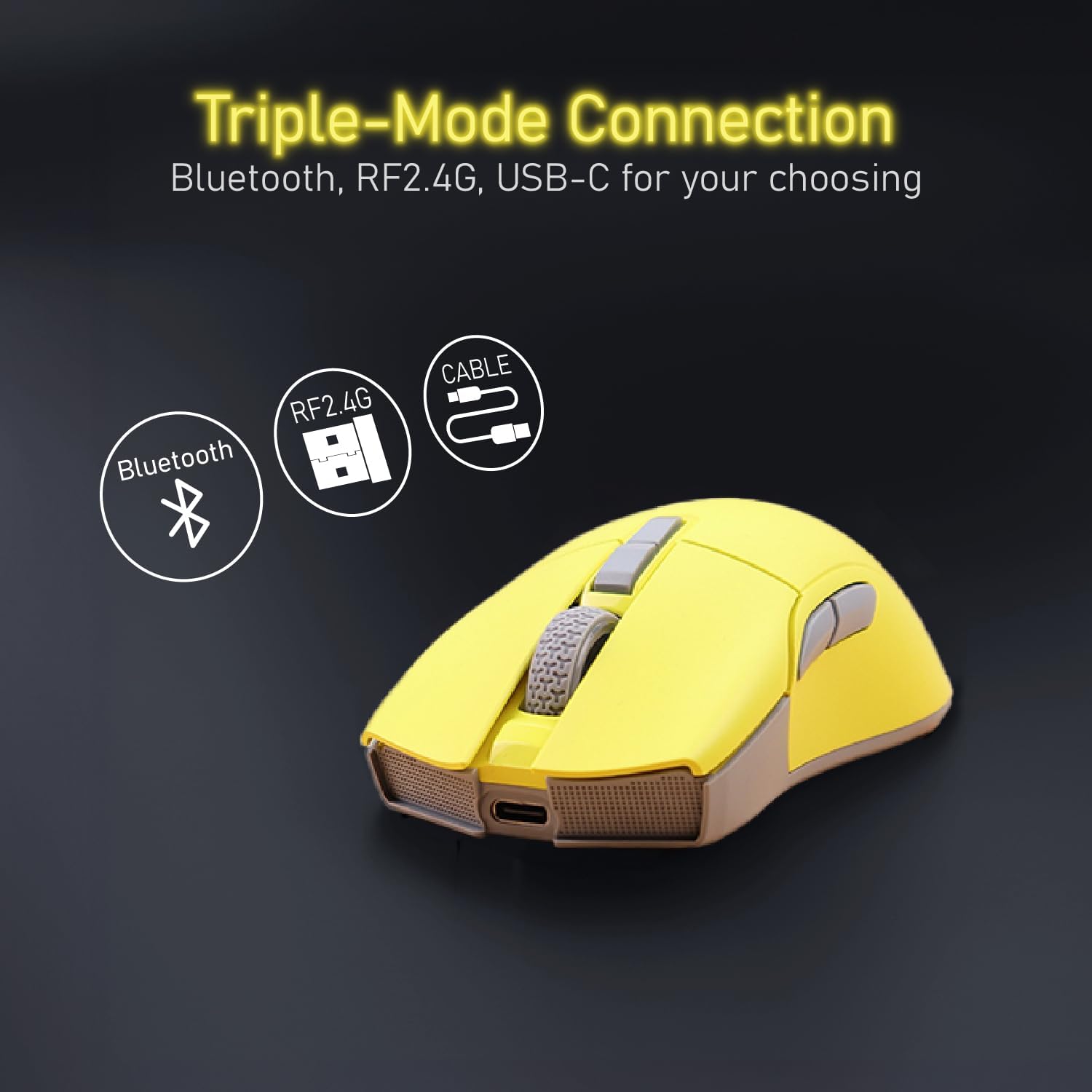 iRocks M31R Wireless Gaming Mouse, Triple Mode 2.4G/ Bluetooth/USB-C Detachable Cable Gaming Mouse, Kailh GM8.0 Switches, Advanced PixArt PAW3395 Optical Sensor, Up to 26,000 DPI - Lemon Yellow