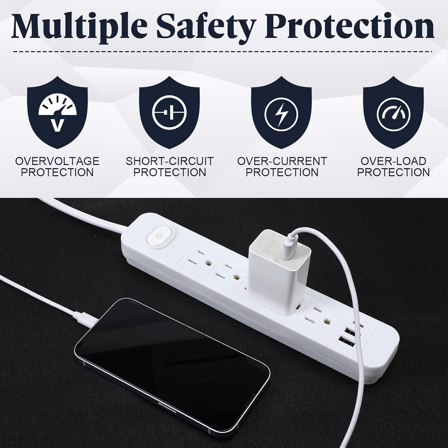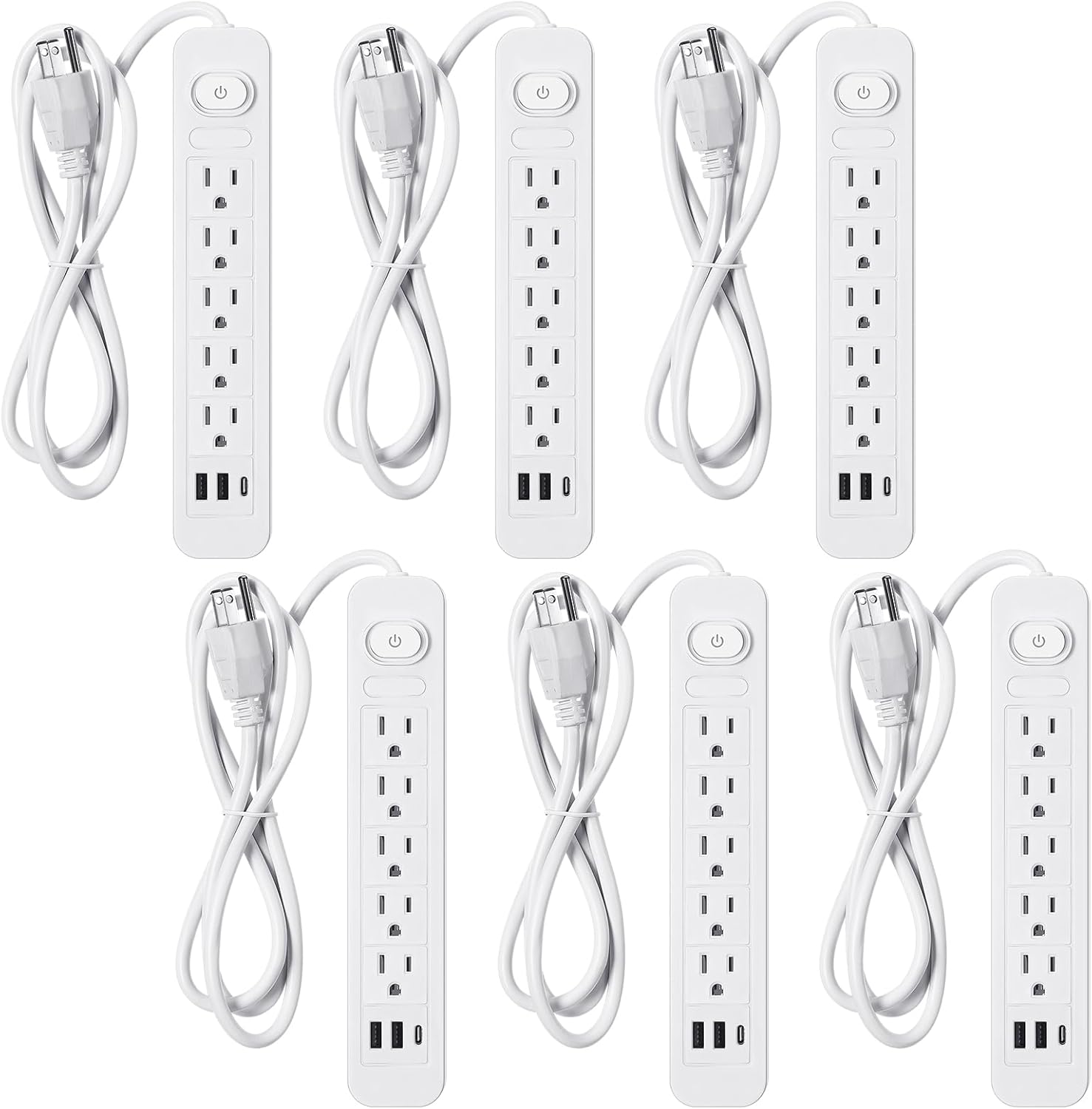 - Multiple Charging Options: you will get 6 pieces of power strips; This power strip offers a wide range of charging options with 5 AC outlets and 3 USB ports which including 2 USB ports and 1 USB-C ports (total: 5V/3.0A, 15W), making it a convenient and versatile choice for your devices; Whether you need to charge your phone, laptop, or other electronics, this power strip has got you covered; They have a full surge protection against voltage fluctuations