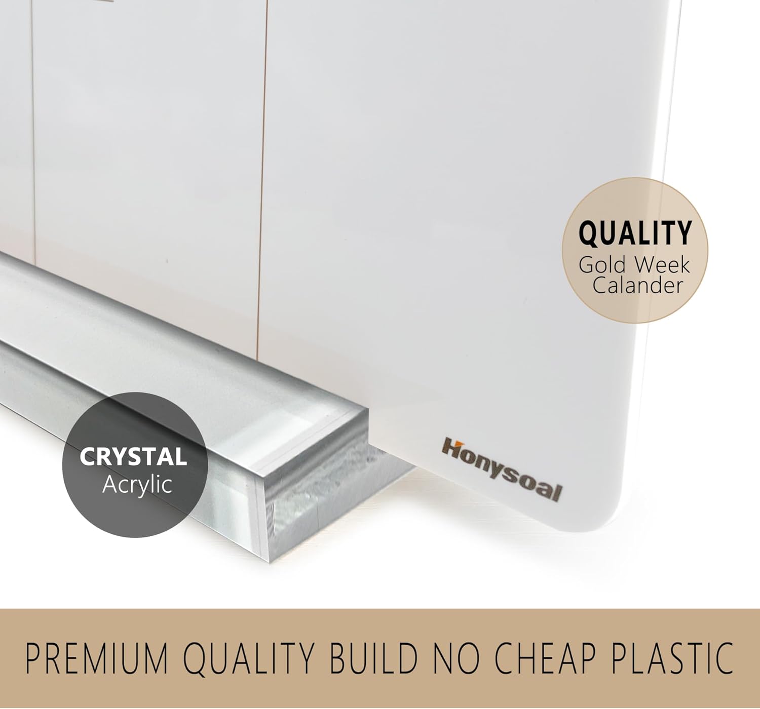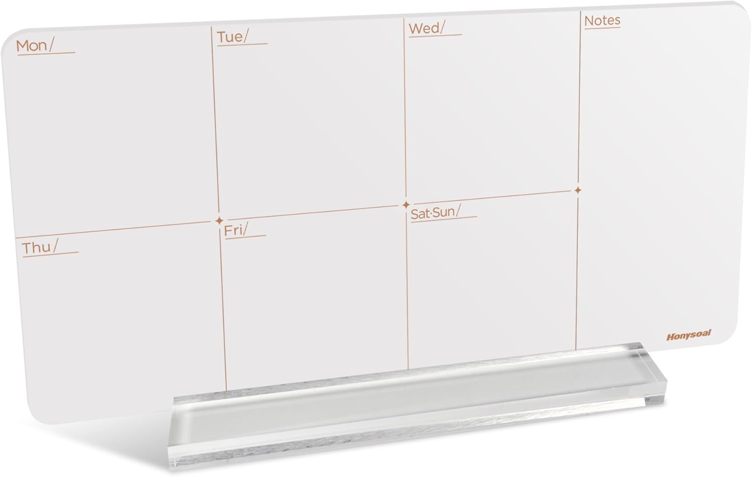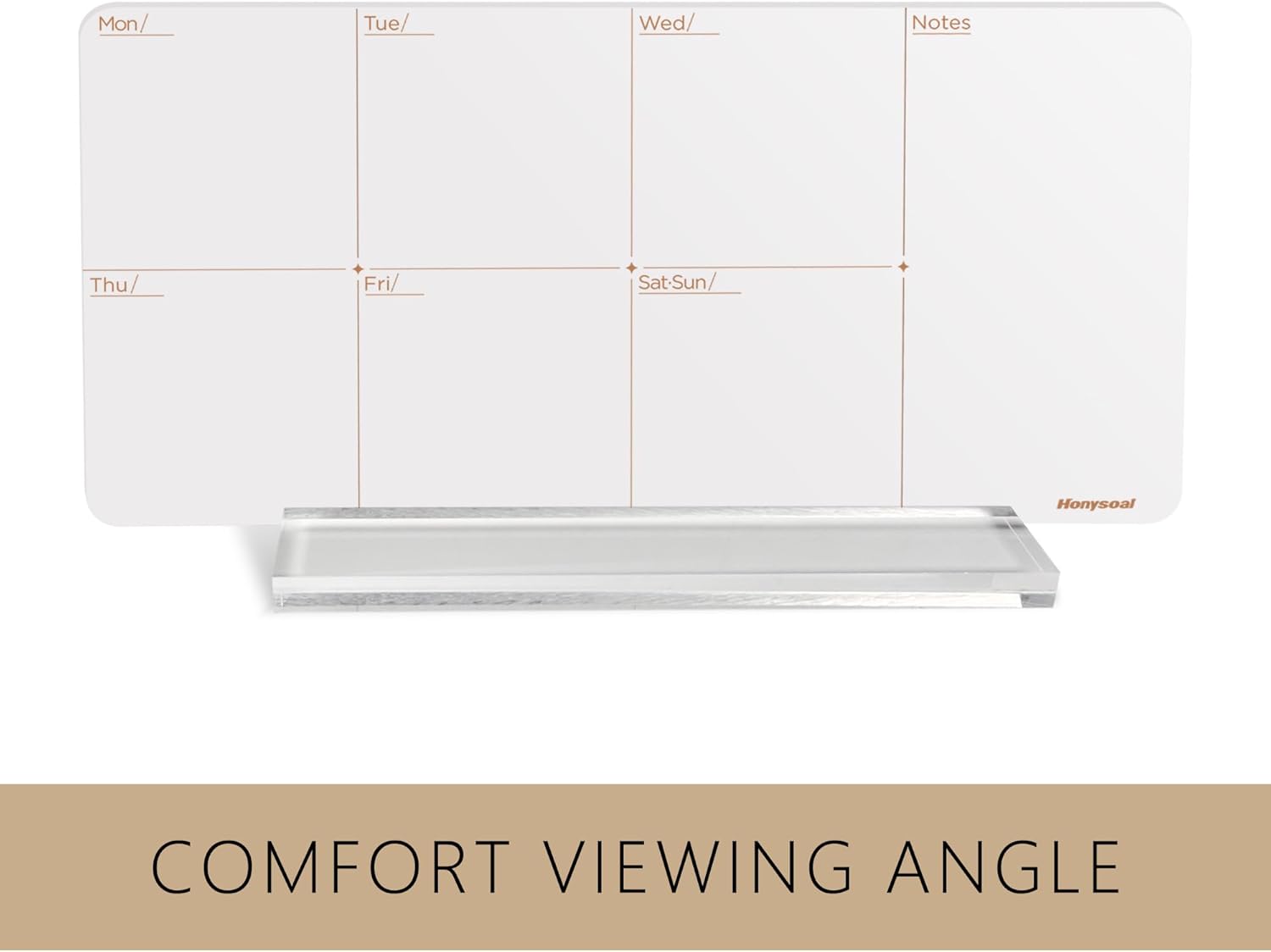 - ✅Perfect Design For Desktop: This desktop weekly calendar whiteboard overall Reinforced acrylic appearance complements any modern décor. Gold printed calendar layout on a frame less clear acrylic. Elegant and generous, can be repeatedly erased.