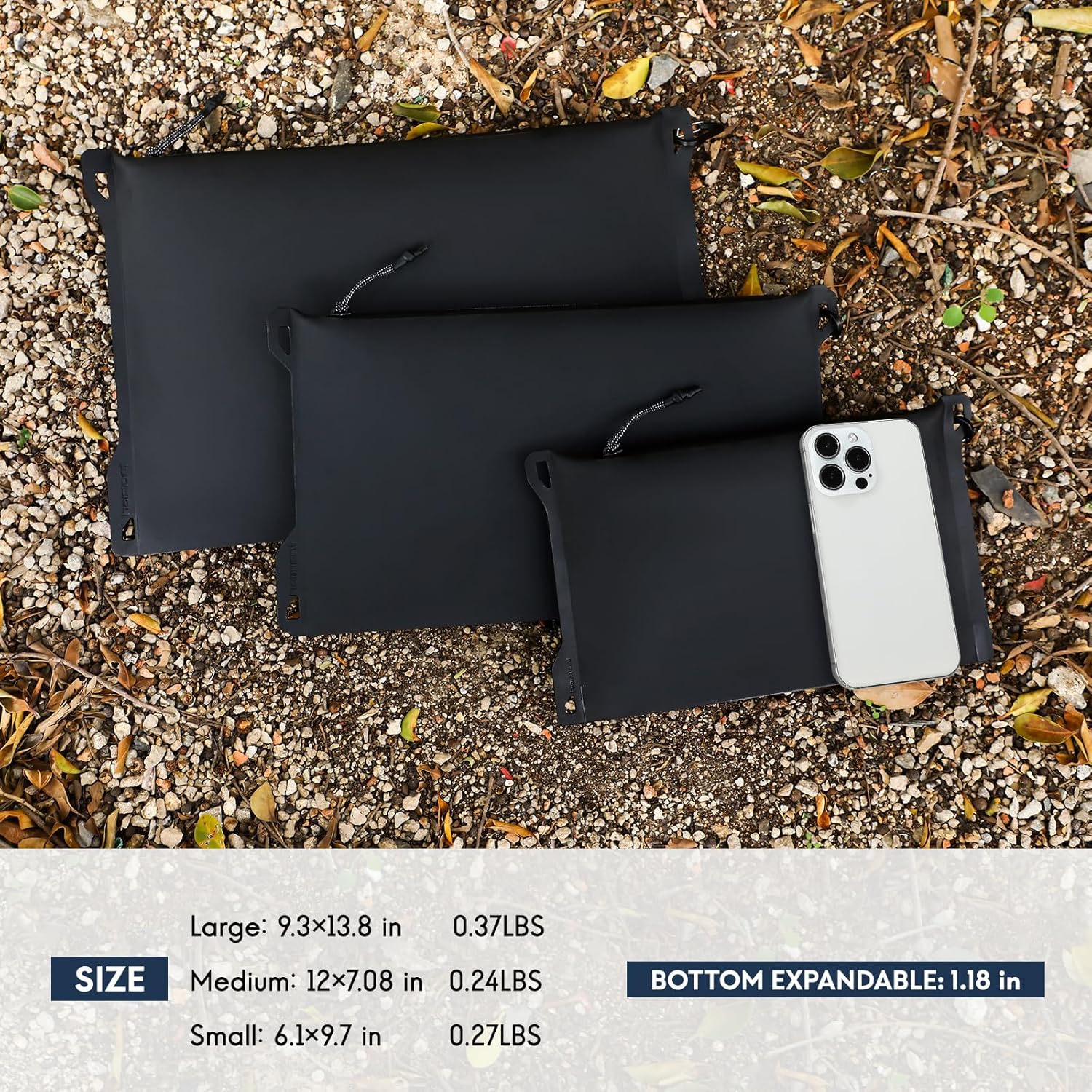 - 100% waterproof and wear resistant zipper pouch made of reinforced polymer material, suitable to protect your belongings from exposure, dirt, moisture and from getting lost