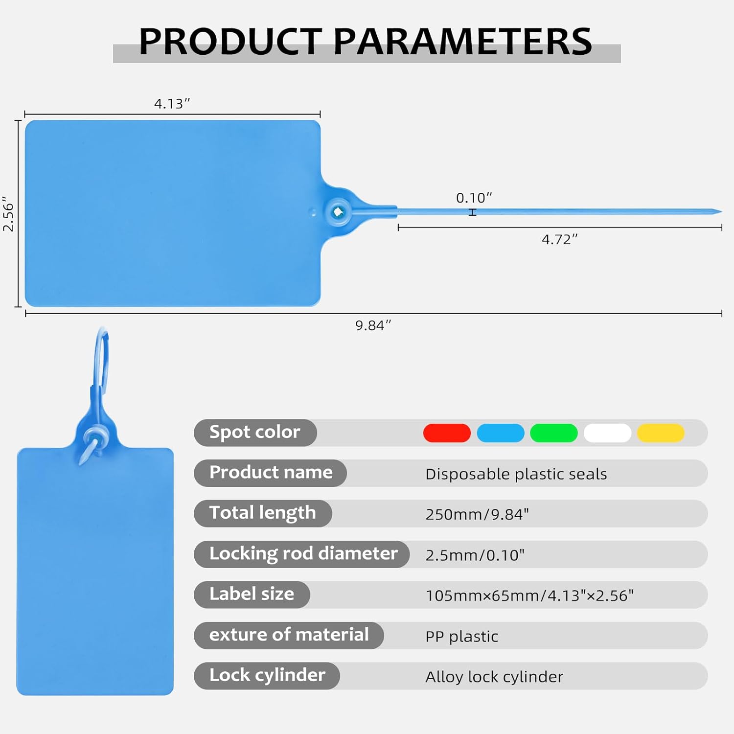 - Easy to use: The big label ties tags is single used and self-locking design. Each tamper proof security seal tags is equipped with metal locking mechanism inside. Just simply insert the tail and pull tight to lock. No tools needed and cannot be pulled out once locked.