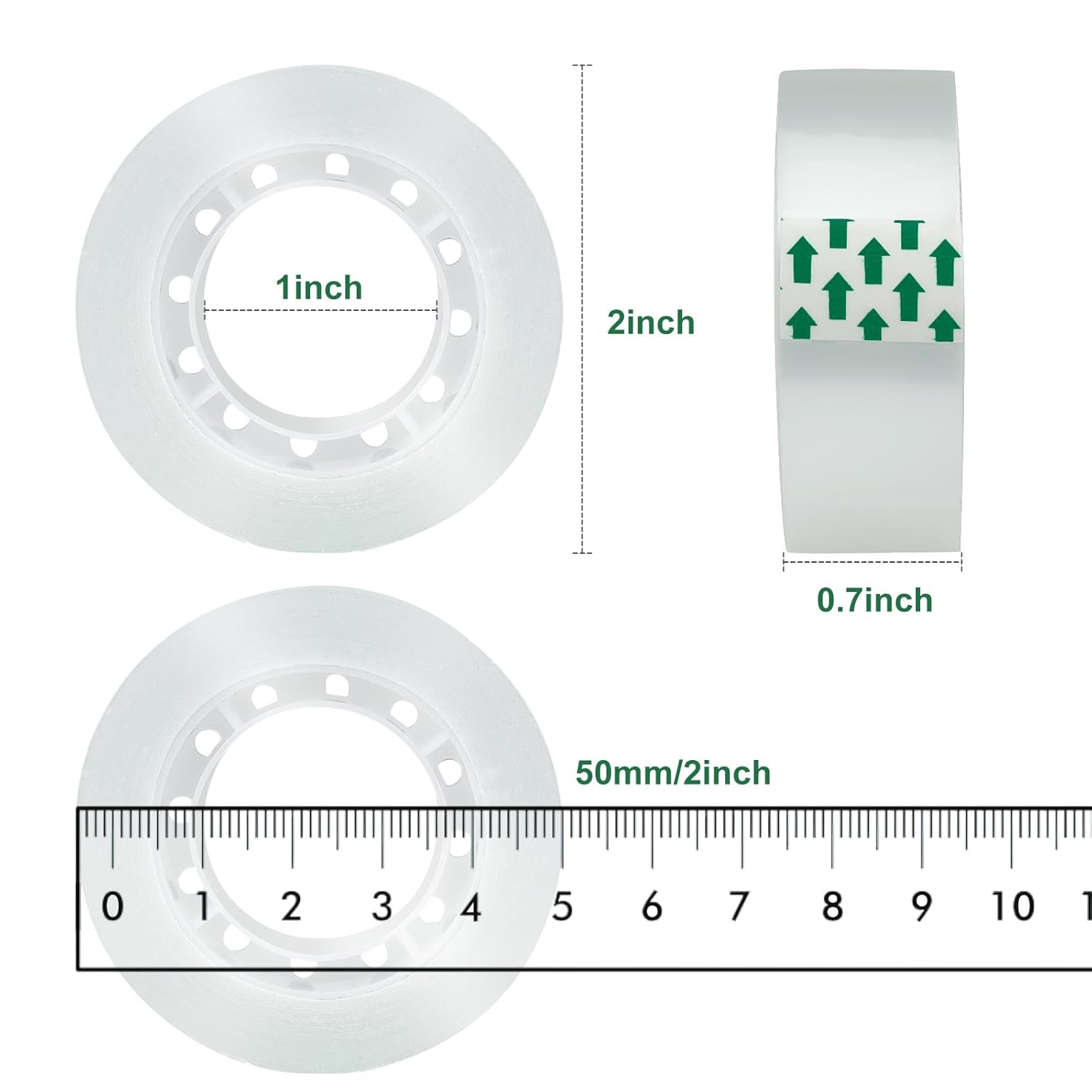 - Suitable size: The refill width of each roll of transparent tape is 3/4 inches/18 millimeters, and the length of each roll is 1000 inches. Gift tape inner diameter is 1 inch/25.8 millimeters, outer diameter is 2.1 inches/53 millimeters, color: transparent, quantity: 48 pieces