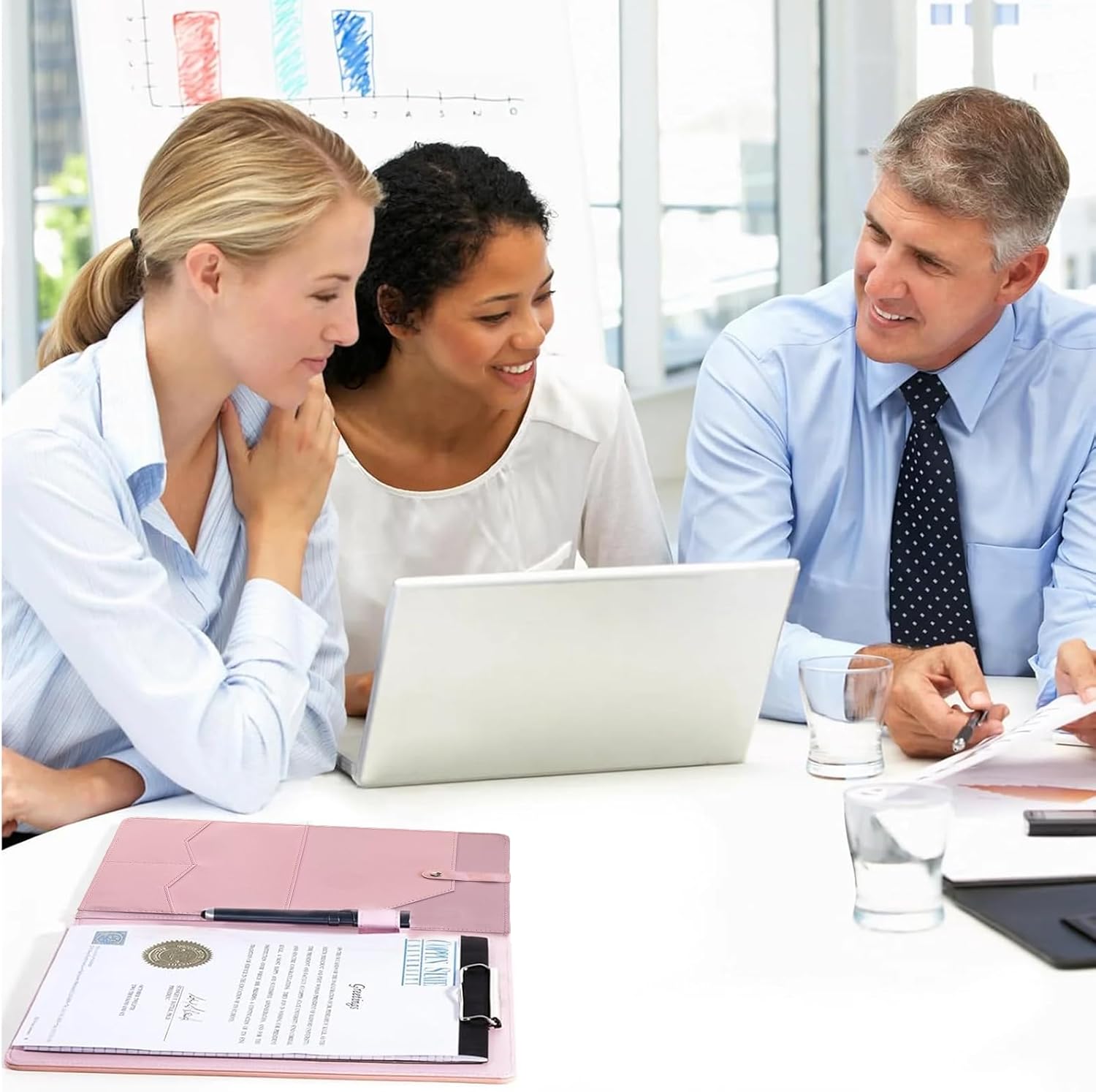 Portfolio Folder Padfolio with A4 Clipboard, PU Leather Portfolio Clipboard Business Binder Writing Clip Board Organizer for Legal Documents Business Card Men Women Pink