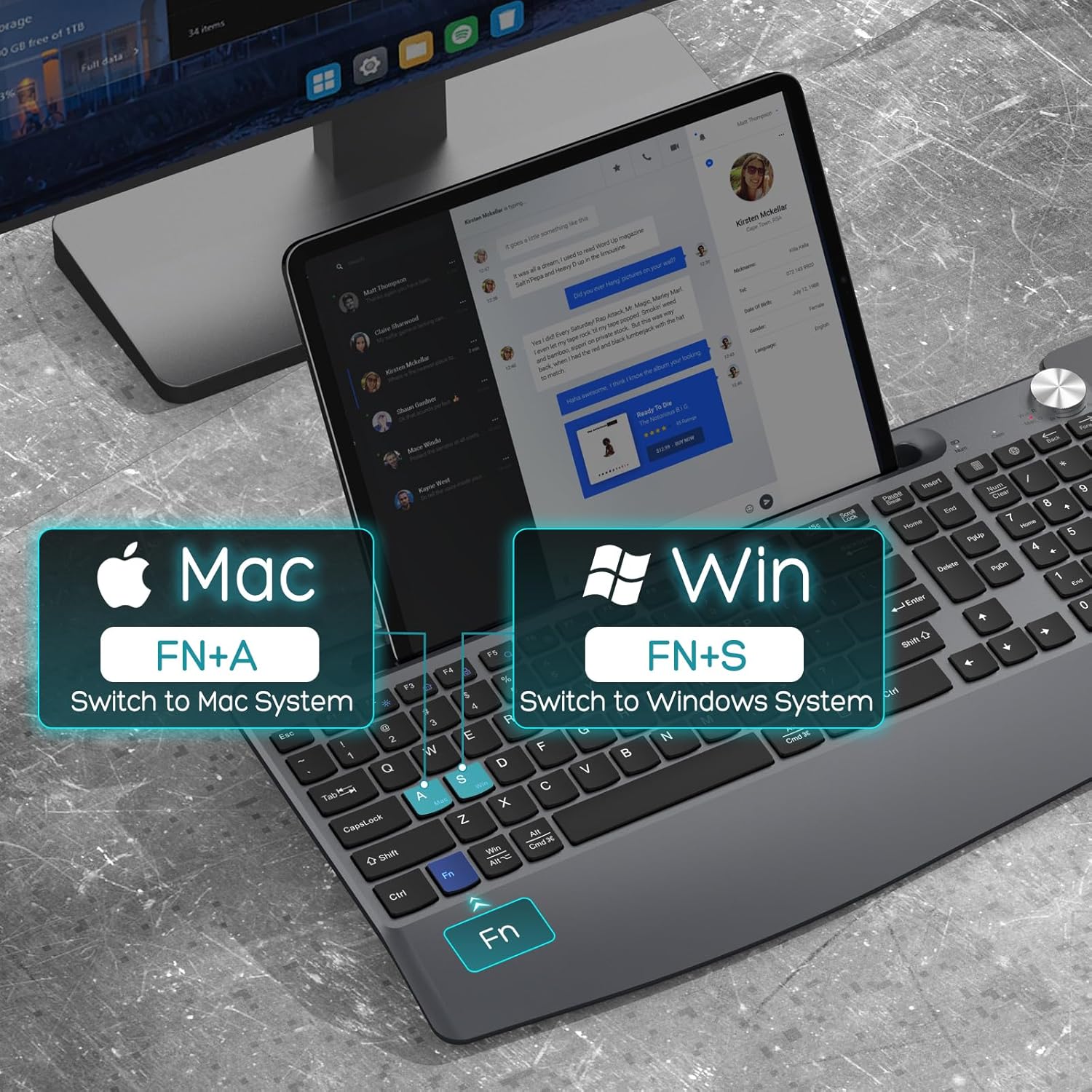 - 【Windows/Mac OS Dual System & 2.4G Stable Wireless Connection】This Ergonomic wireless keyboard and mouse is equipped with Windows/Mac OS dual systems, you can use Windows or Mac keyboard layouts depending on your devices system.Simply connect both keyboard and mouse with the same USB receiver.(INCLUDED in mouse’s battery compartment)It's easy to install, plug and play, and you will not experience any connection or lag issues! Powerful and reliable connection range is up to 10 meters.(33ft)