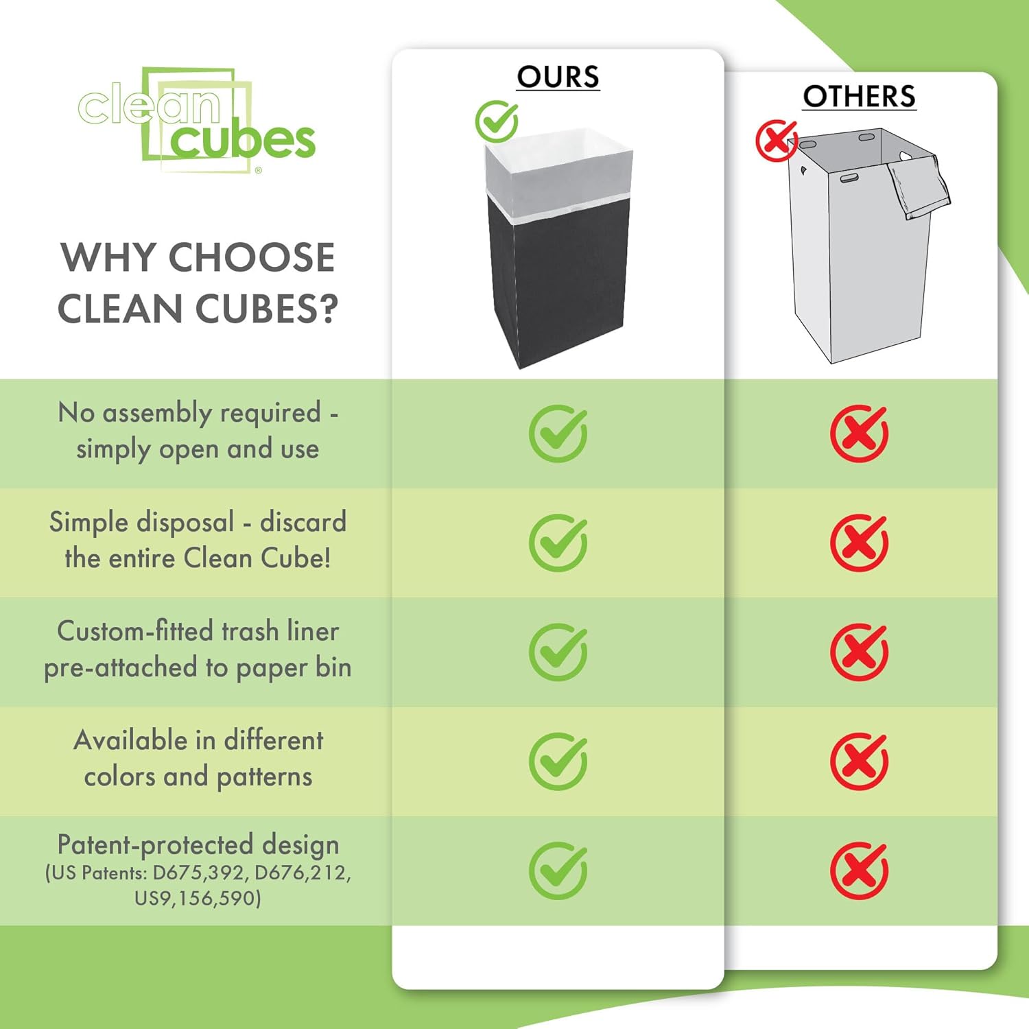 - ✅【VALUE 3-PACK】Includes 3 Clean Cubes per package — each bin comes with 3 custom-fitted trash liners. 30-gallon capacity (17” x 14” x 30”).