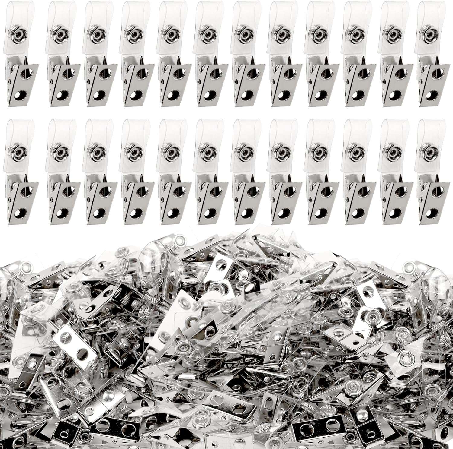 Happy Trees 300pc Metal Badge Clips with Strap Clear ID Strap Clip Adapter