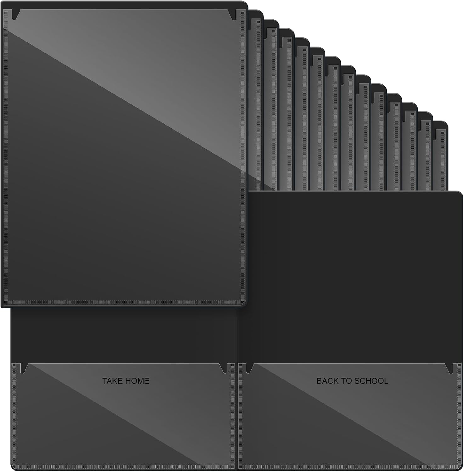 Henoyso 24 Pcs Folders Take Home Heavy Duty 2 Pocket Homework Folders with Clear Front Pockets for Elementary Students Parent Teacher Communication (Black)