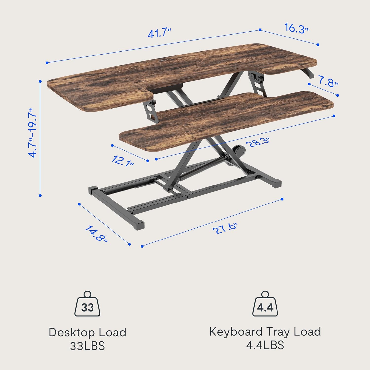 FLEXISPOT Height Adjustable Standing Desk Converter 42" Sit-to-Stand Desk Riser with Wide Keyboard Tray Workstation for Home and Office, Rustic Color (Rustic Brown, 42")