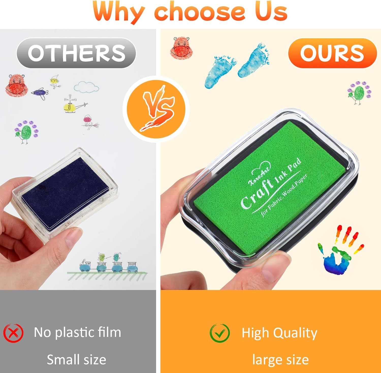 - 【 High Quality and Beautiful Color】: Washable ink pad is Non-toxic and easy to clean, ink pad sponges are thickened and can hold more ink. Avoid the shortcomings of the ink pad being used up quickly and the ink pad being dry.Children can use their imagination, creating a great finger painting for other kind of craft as well.