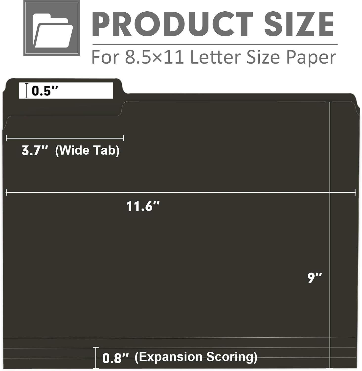 File Folder, PANDRI 120 Pack File Folder, 1/3 Cut Tab, Letter Size, Filing Folder for Office School Business, Black