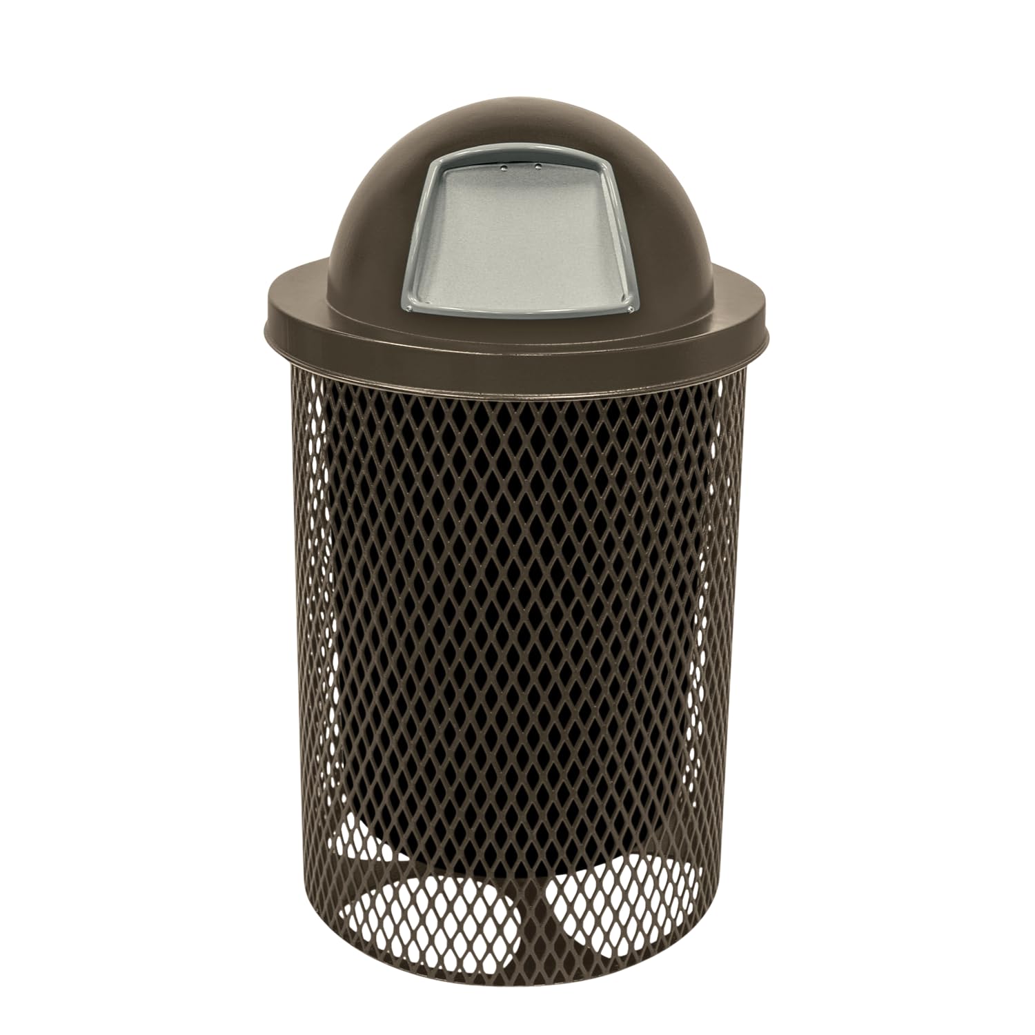 RDT-TXTBRW Heavy Duty 32 Gallon Round Trash Receptacle, Liner Included, Textured Brown with Textured Brown Steel Dome Top, Made in America