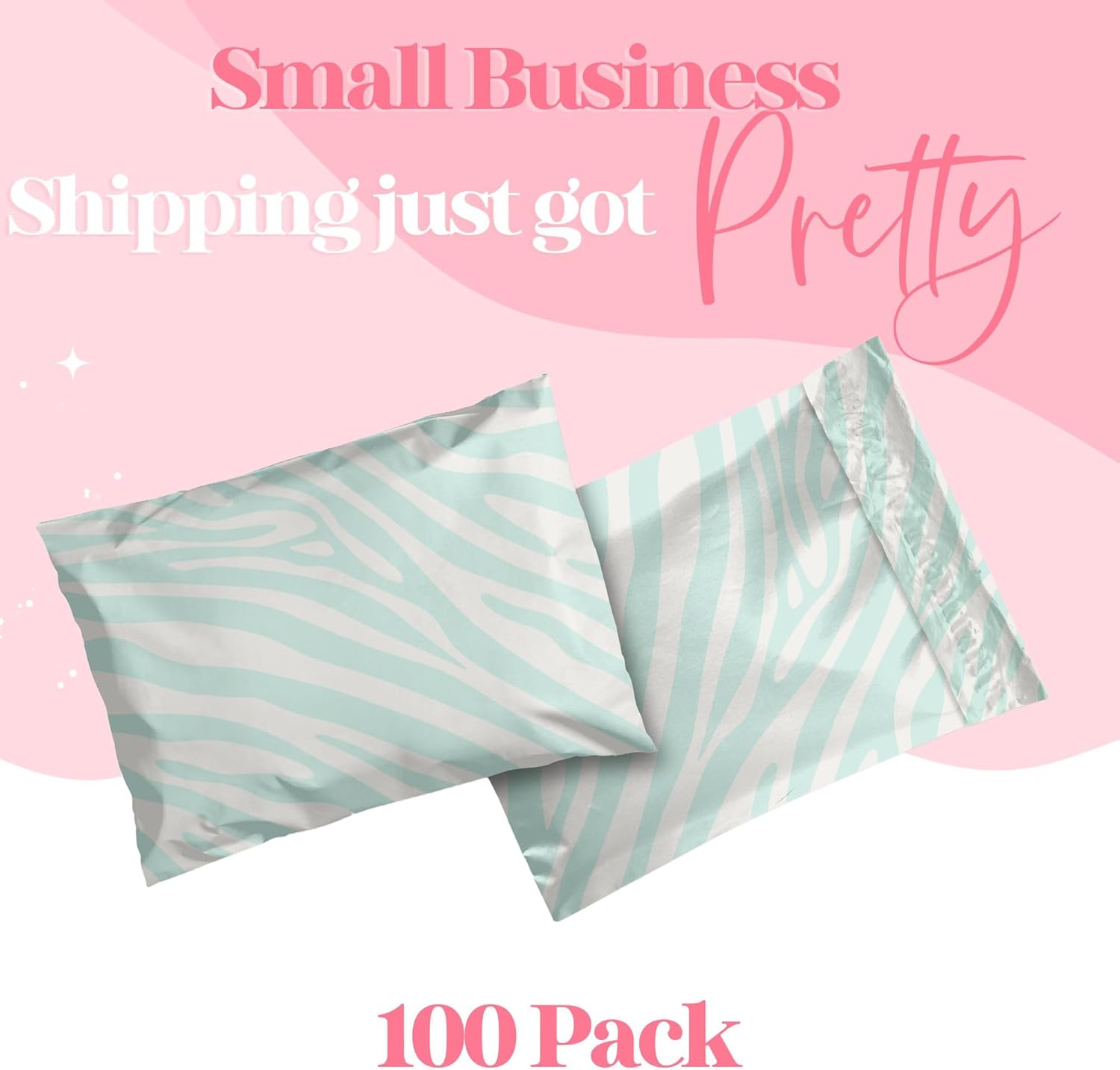 14.5x19 Designer Poly Mailer 100 Pack Heavy Duty Waterproof Self Seal Shipping Bags for Small Business Large Mailing Envelopes Bulk Tear Resistant Cute Packaging Mint Zebra