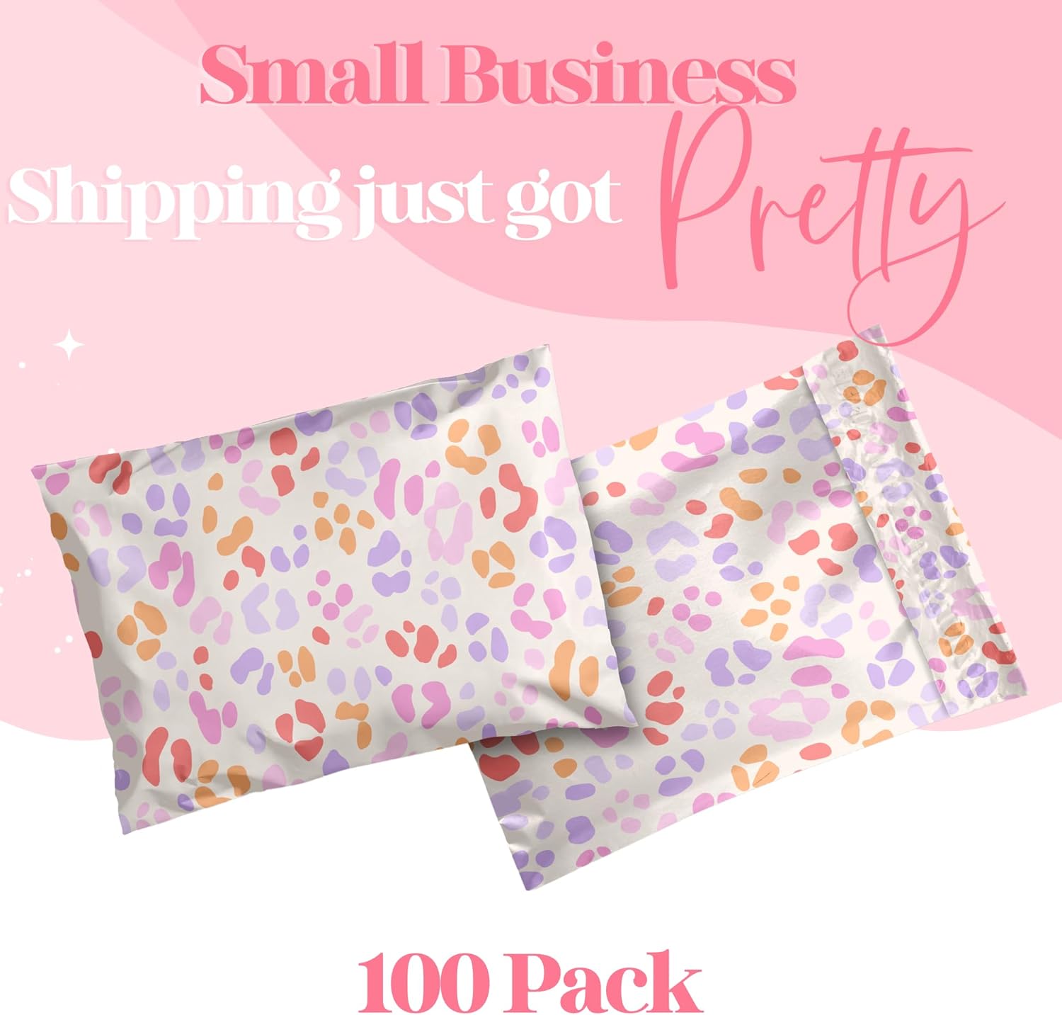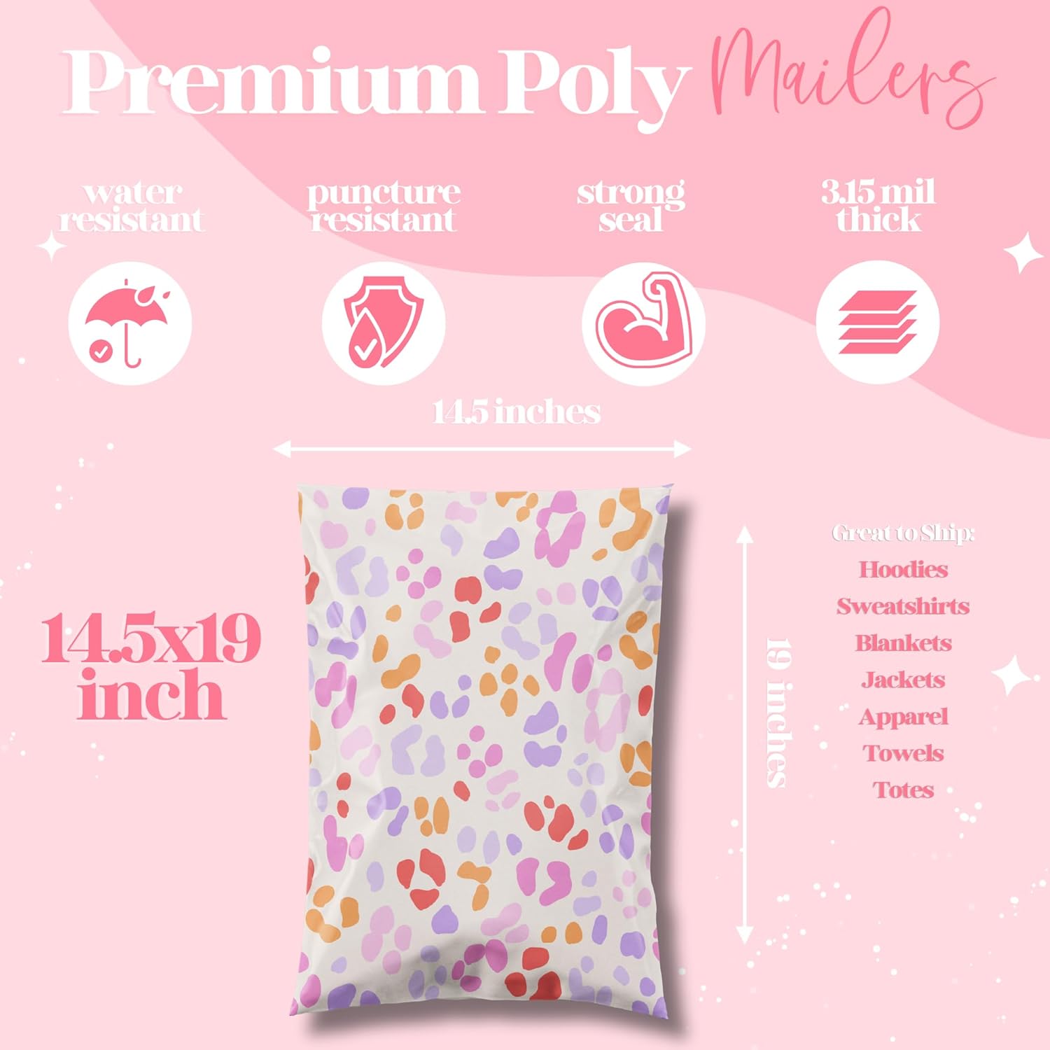 14.5x19 Designer Poly Mailer 100 Pack Heavy Duty Waterproof Self Seal Shipping Bags for Small Business Large Mailing Envelopes Bulk Tear Resistant Cute Packaging Preppy Leopard
