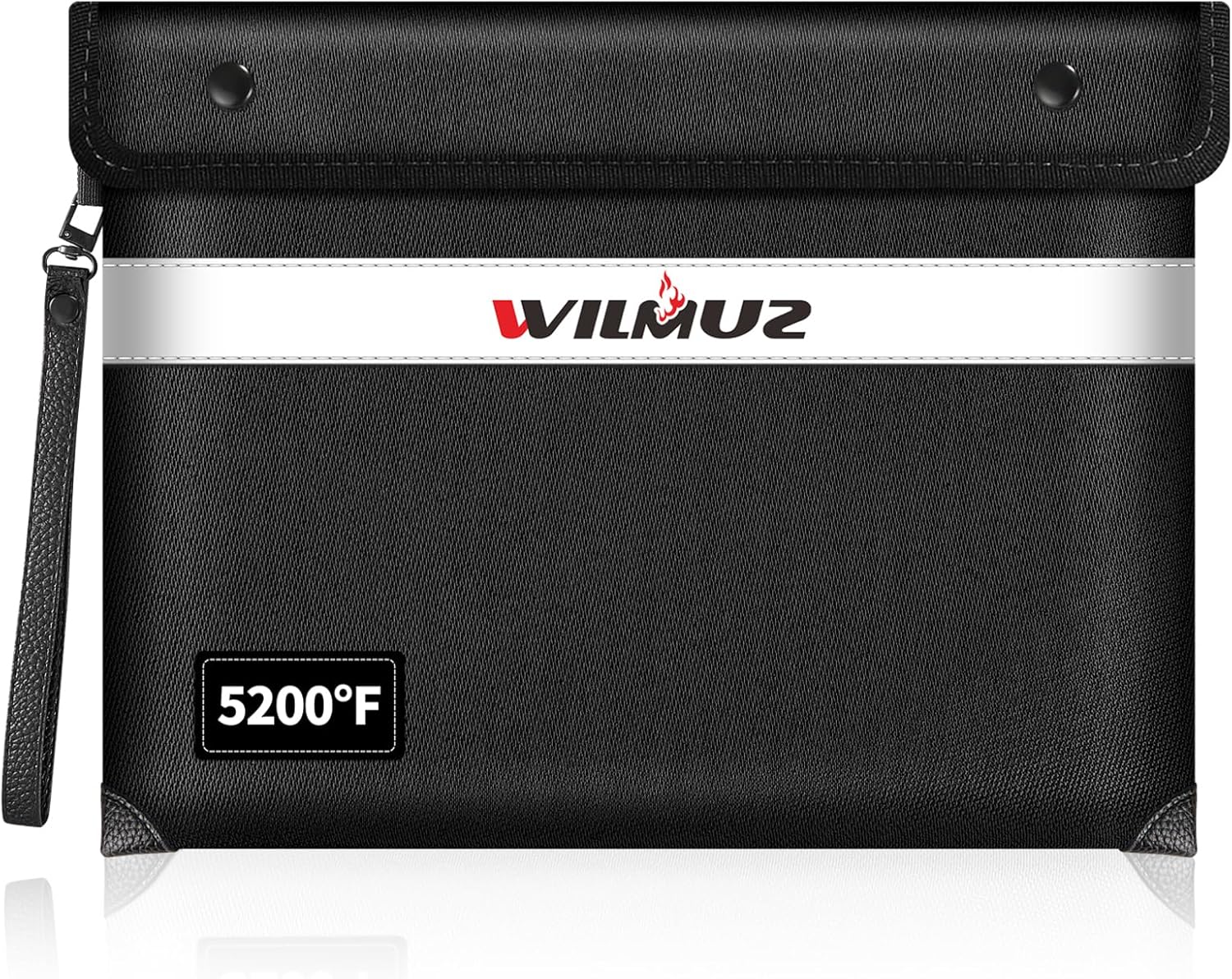 - 🧯【Reliable Material】This Wilmuz fireproof bag uses high-quality fireproof materials. From the outside to the inside, it is composed of eight layers of materials such as glass fiber cloth,heat insulation cotton, and aluminum foil, making it pass Global Flammability Standards (US labs) and Vertical Combustion Testing ( SGS UL94 V-1) certification, enough to withstand high temperature of 5200℉. its edge seams have been strictly waterproofed to withstand high-speed jets of fire hose.