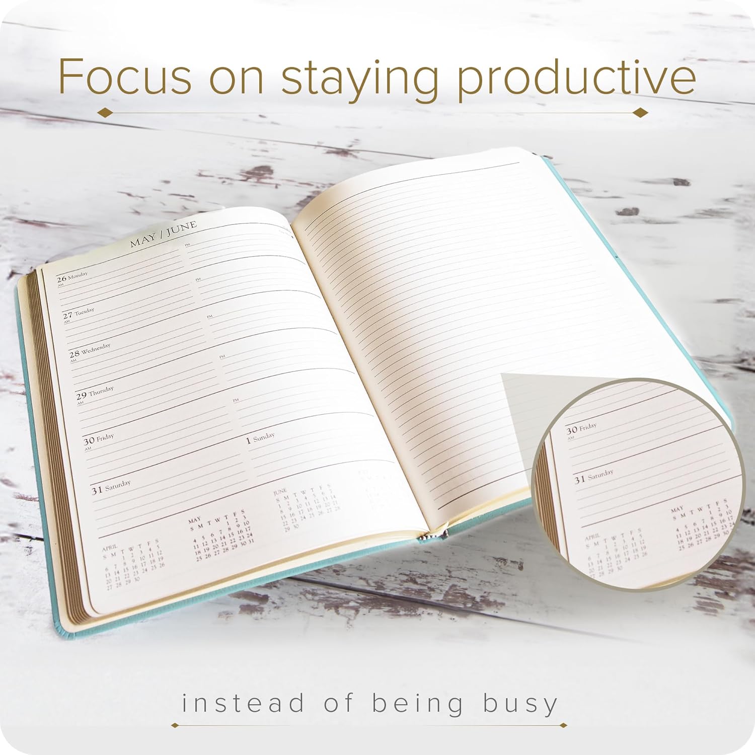 Gallery Leather Academic Planner 2025, Teacher and Student Weekly Monthly Planner, Elegantly Bound Calendar with Gold-Gilded Page Edges, 18 Months - Acadia Pool - 9 x 7 "