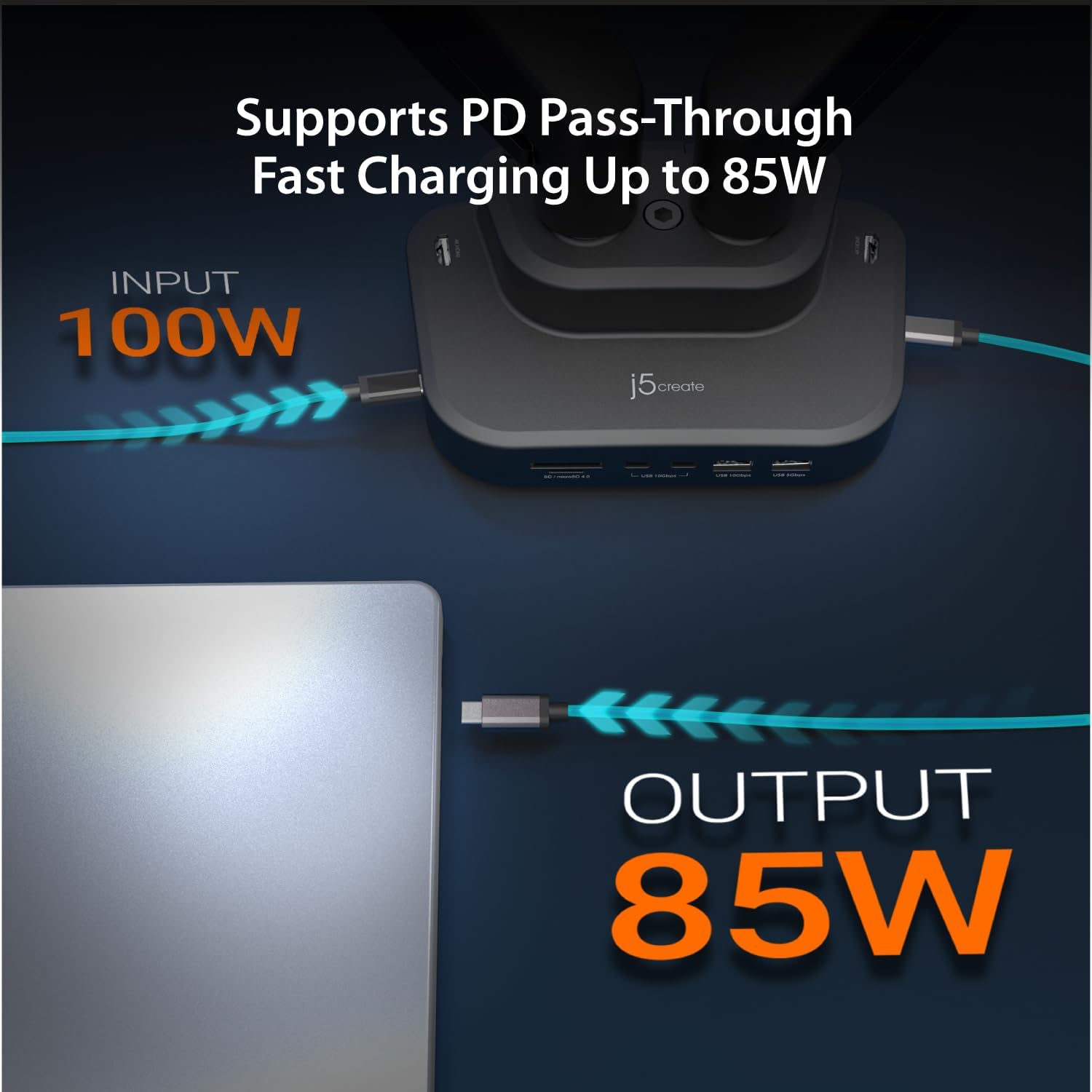 j5create Dual Monitor Mount with 10-in-1 Docking Station, Fully Adjustable Monitor Desk Stand for 2 Screens up to 32 inch, Conveniently Set Optimal Angle and Maximize Productivity (JTSA302)